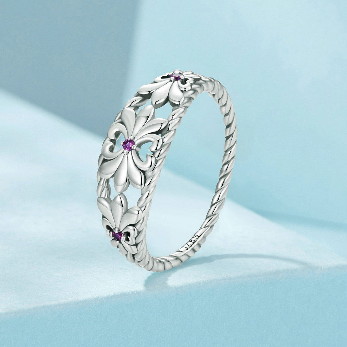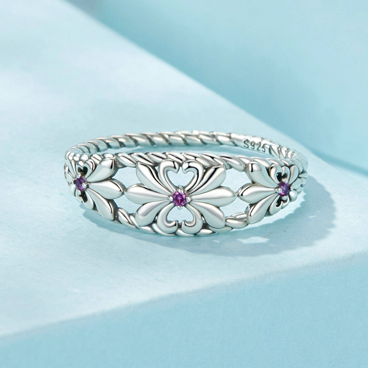 This stunning 925 sterling silver ring features a retro flower design with sparkling zirconia stones. It is a symbol of history and beauty, making it a truly special piece of high jewelry.