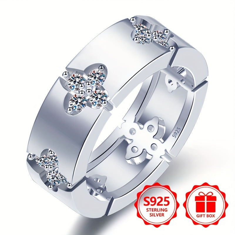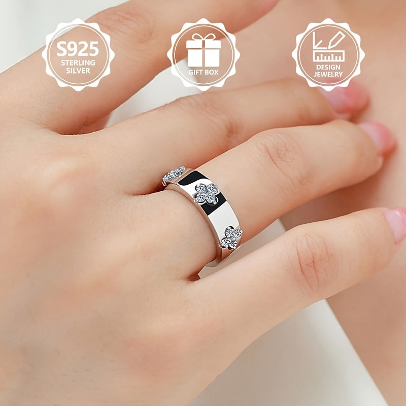 Add a touch of elegance with this minimalist 925 sterling silver ring featuring inlaid synthetic zirconia. Perfect for daily wear and special occasions.