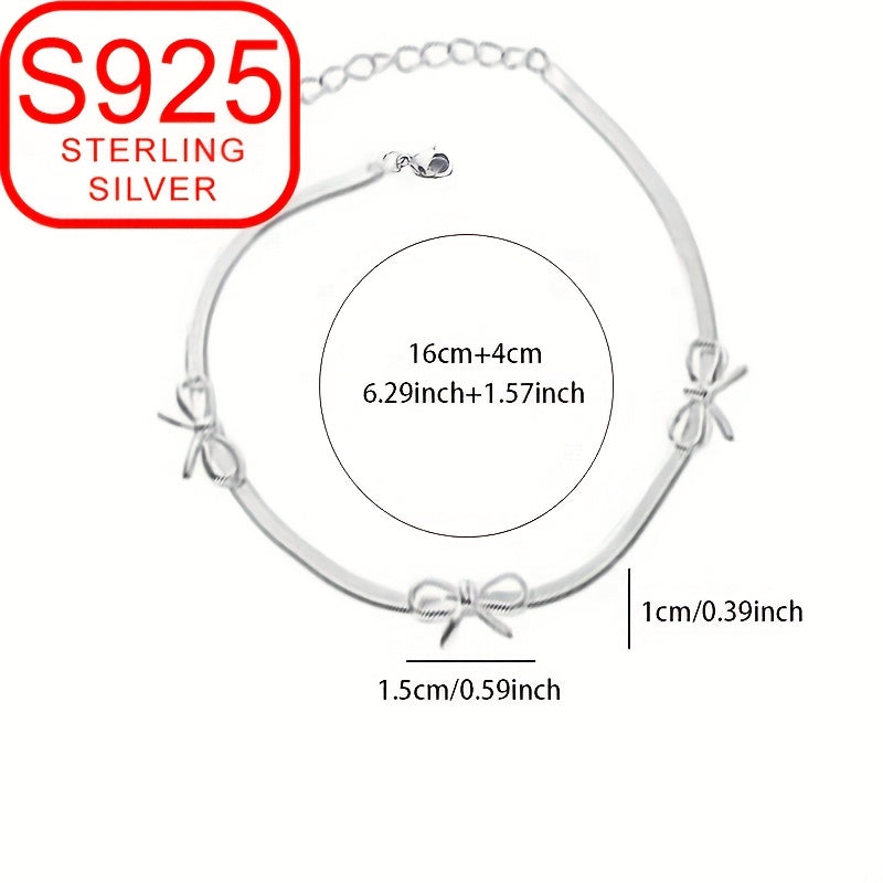 This 925 silver snake bone bracelet is a low-allergy piece featuring a bow ballet style design. A perfect gift for Mother's Christmas or any special occasion.