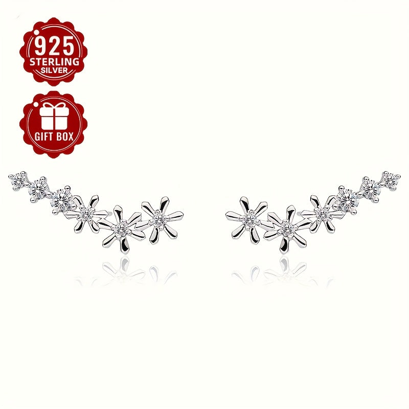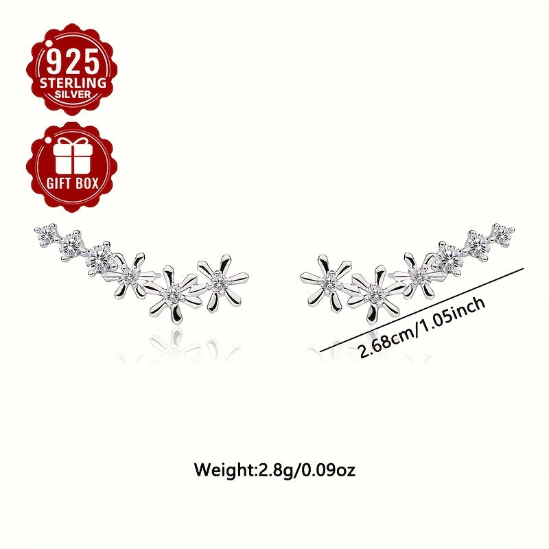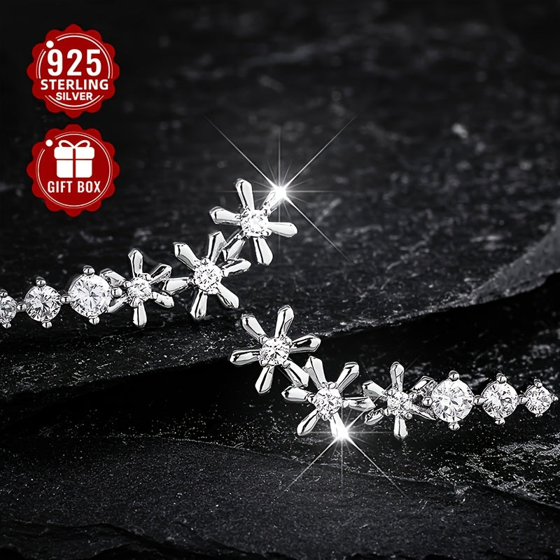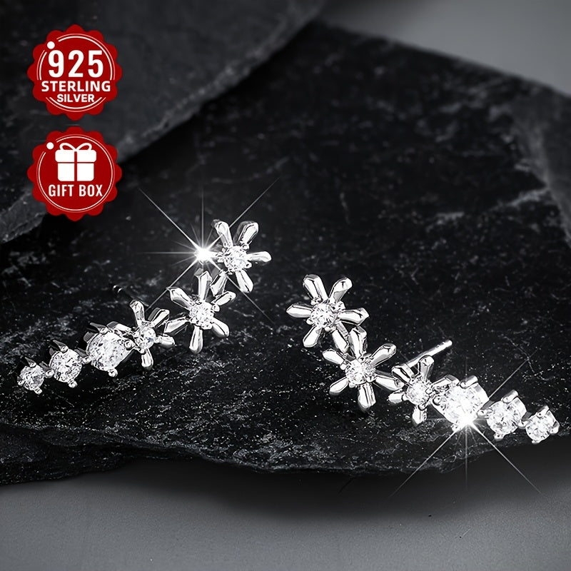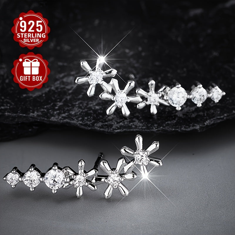 925 Silver Snowflake Inlay Zircon Ear Climber & Earrings Set