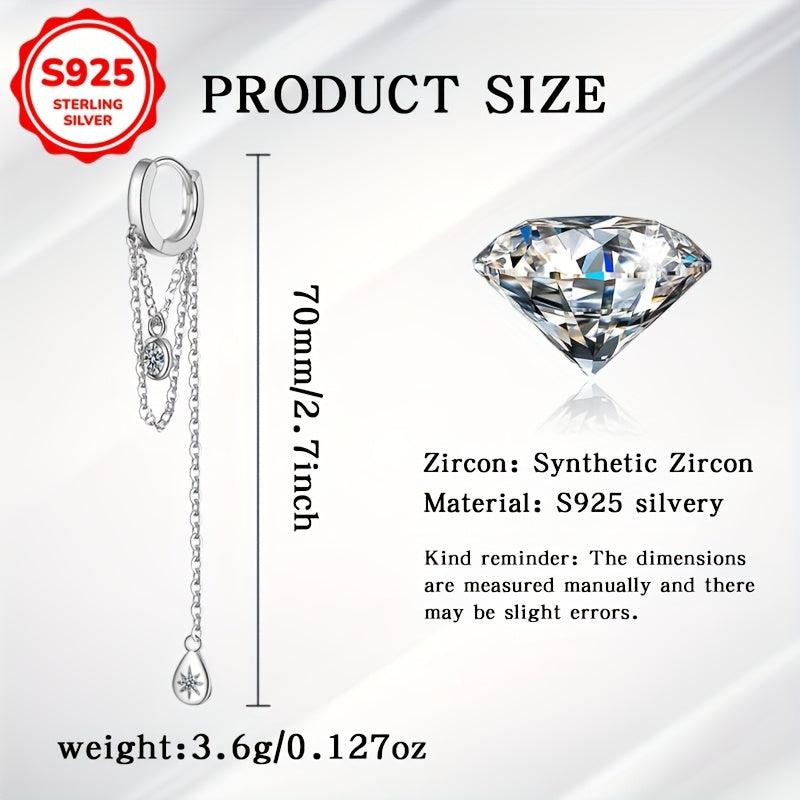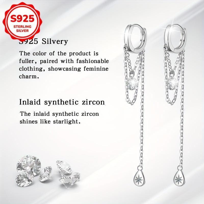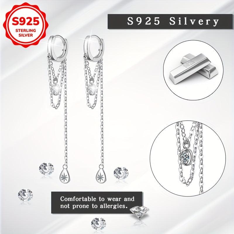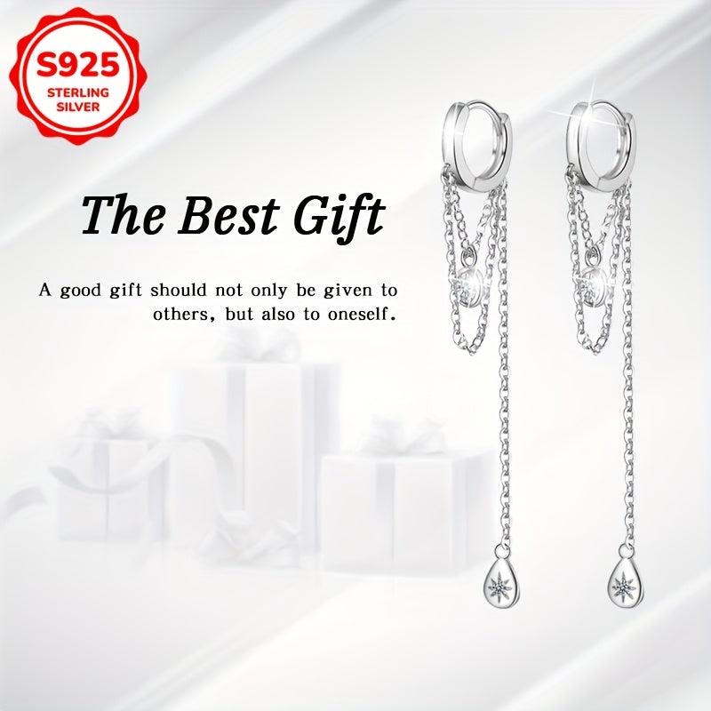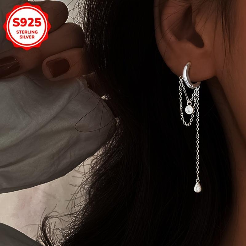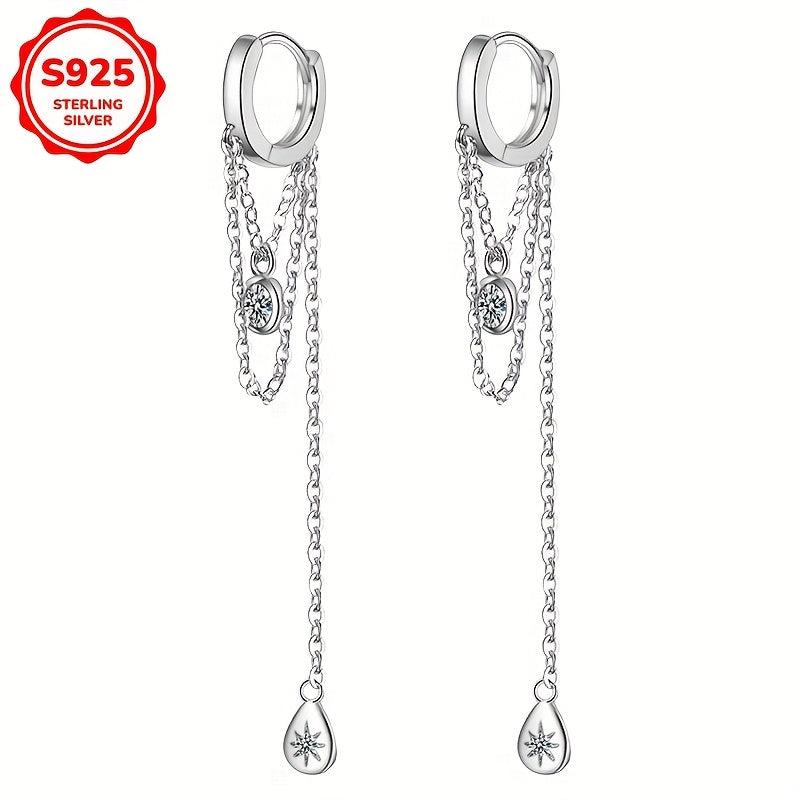 Stunning pair of drop earrings with water drop chain tassels made of 925 silver and adorned with zirconia. Weighs just 3.6 grams, a perfect accessory for women.