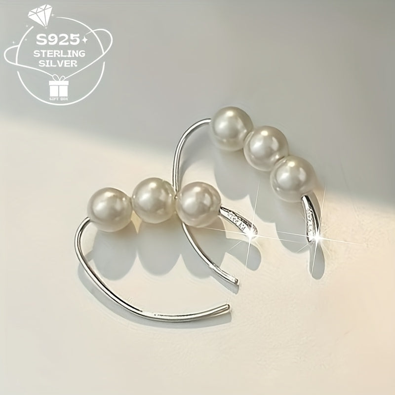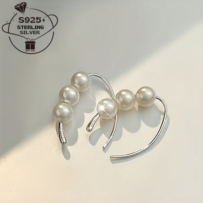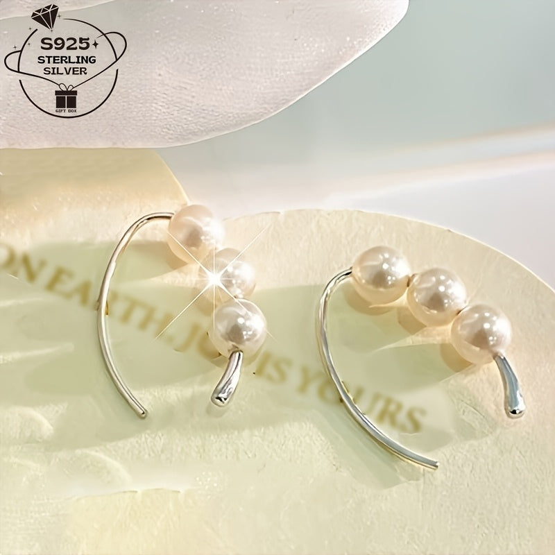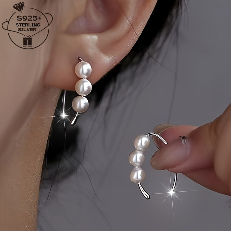Stylish and minimalist, these earrings are perfect as a travel souvenir. Made with 925 silver, hypoallergenic and adorned with three artificial pearl teardrop hooks.