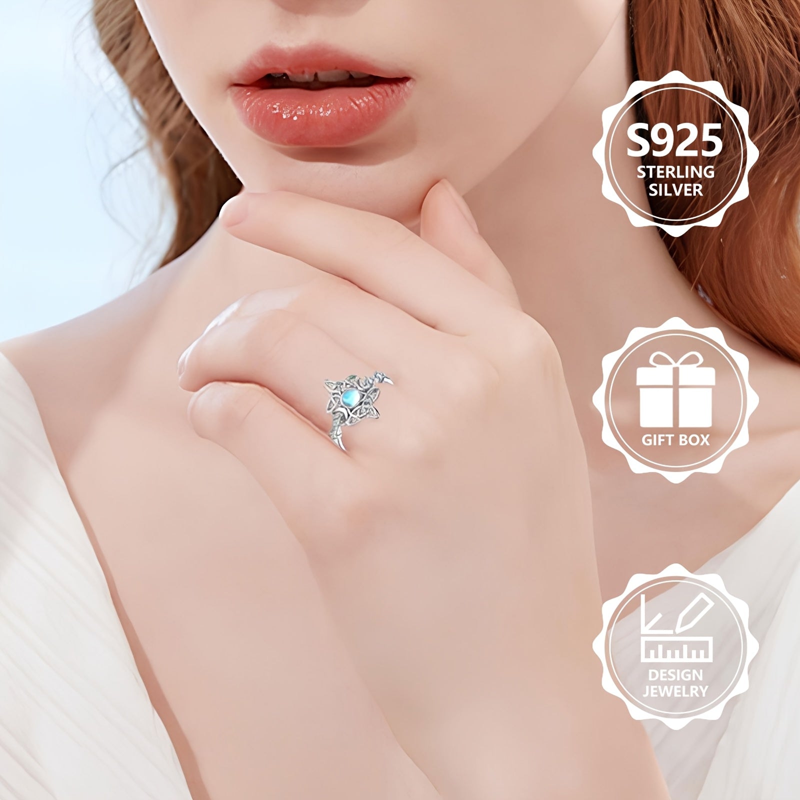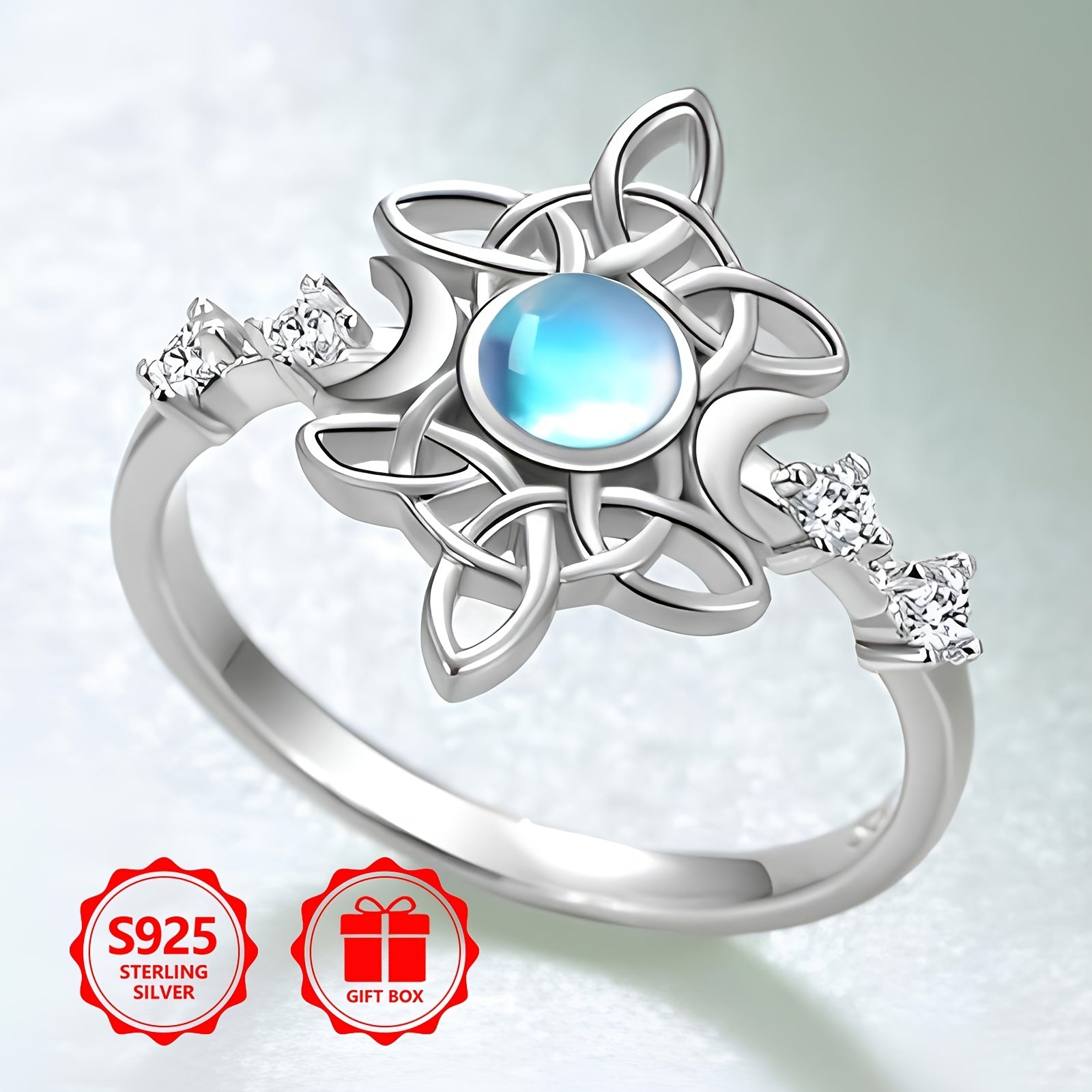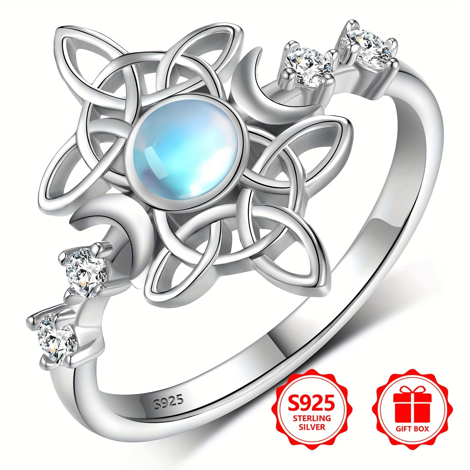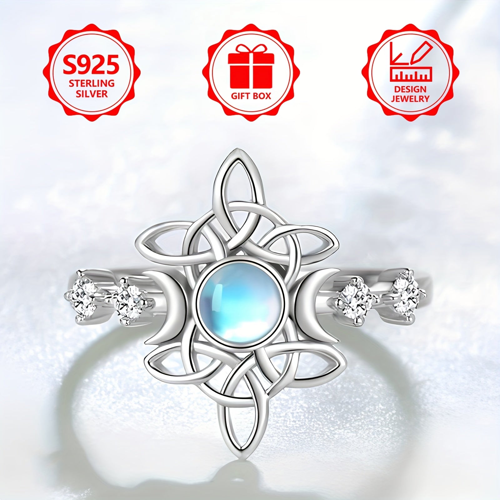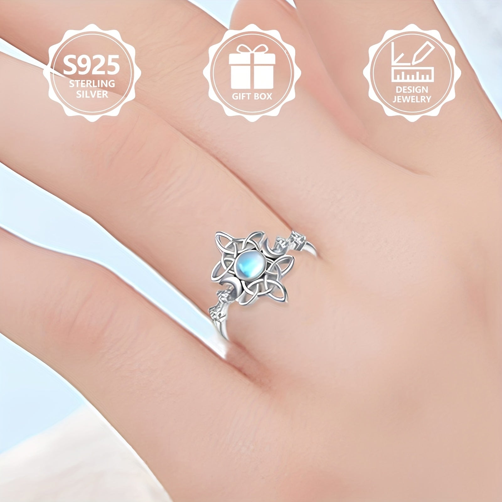 Embrace your inner mystic with this enchanting 925 silver ring featuring a witch knot symbol and a mesmerizing moonlight stone.