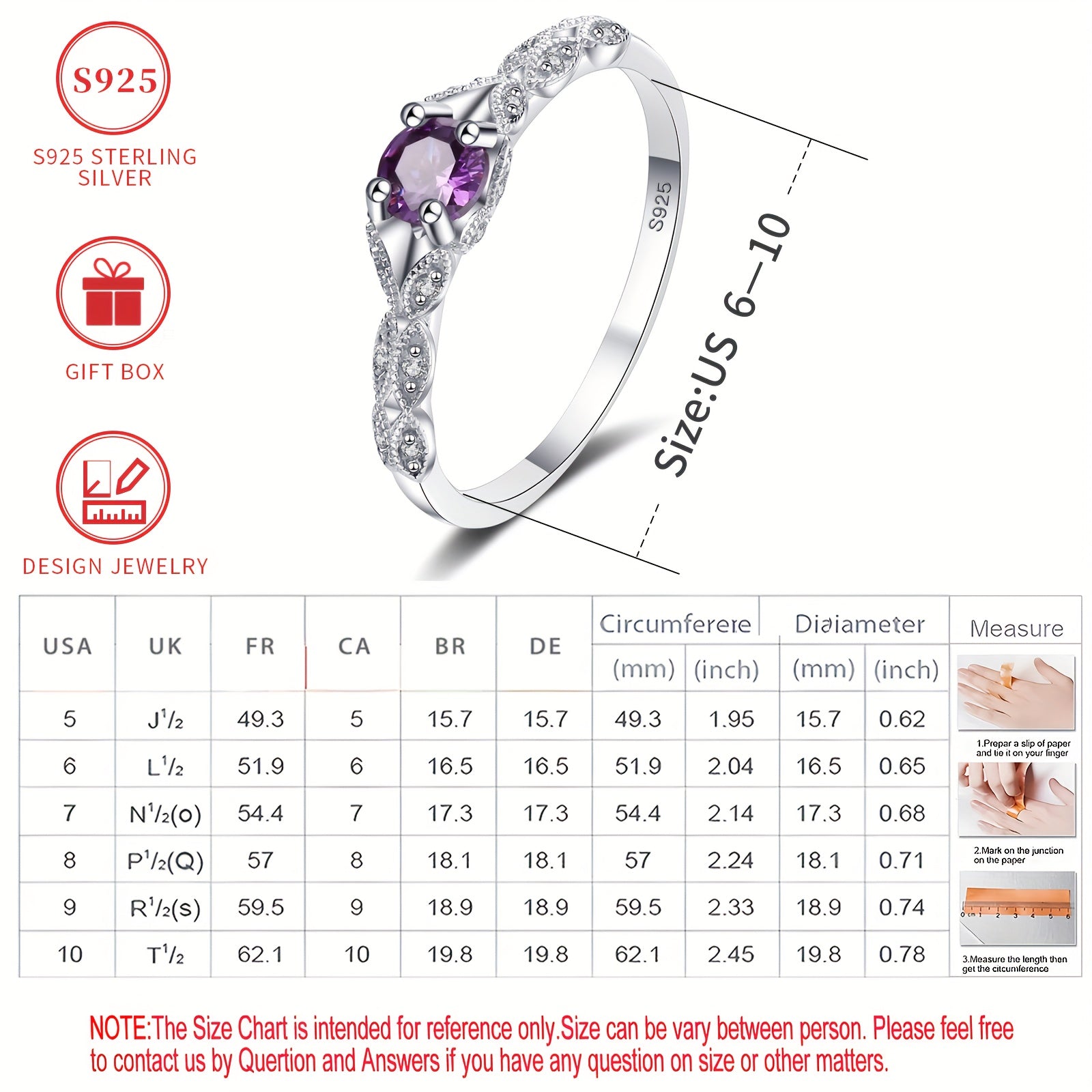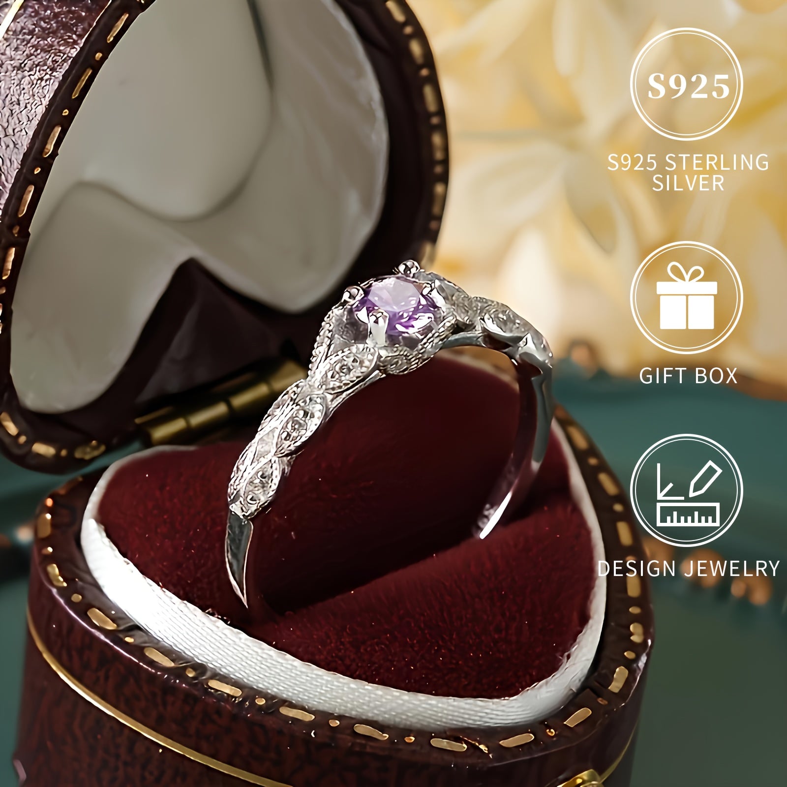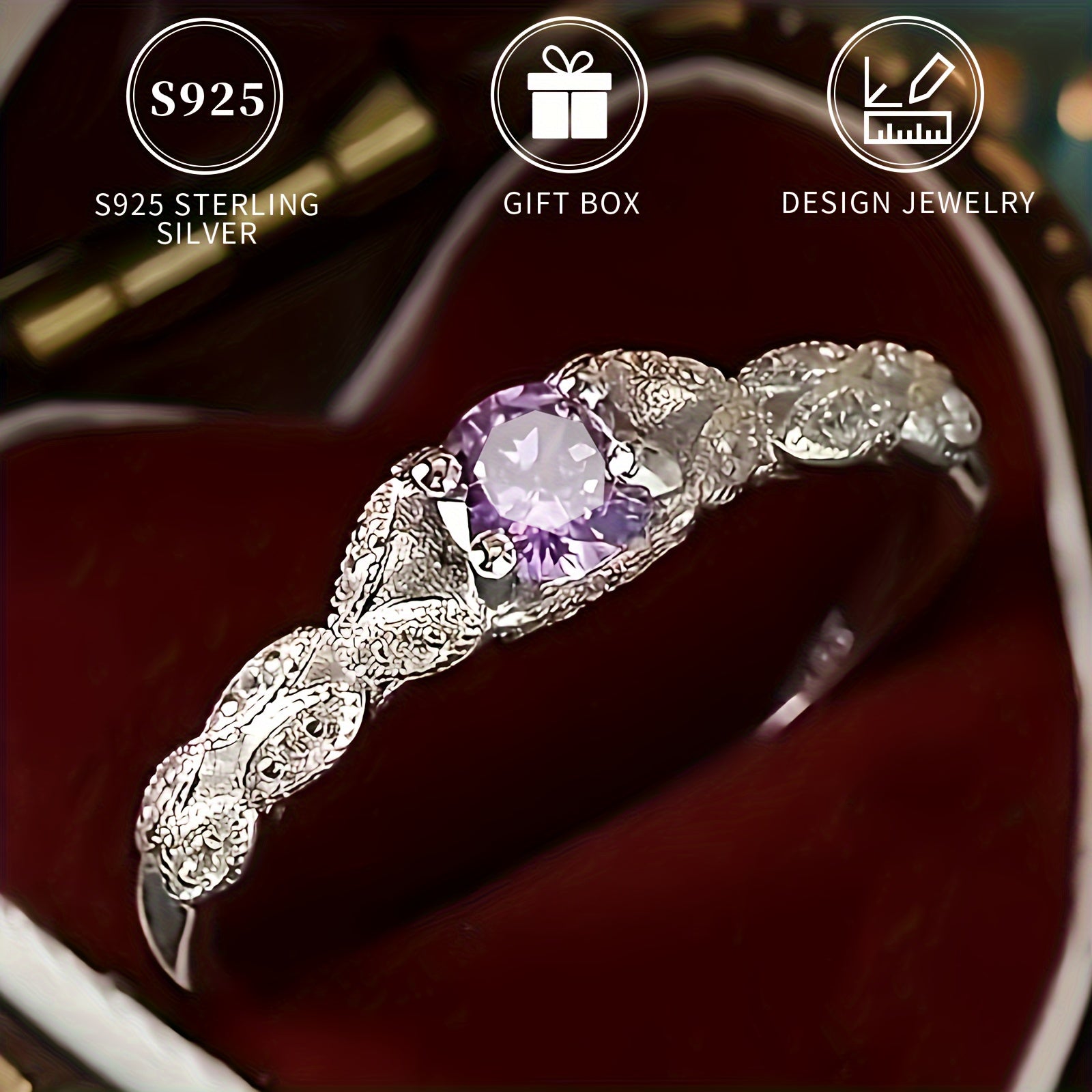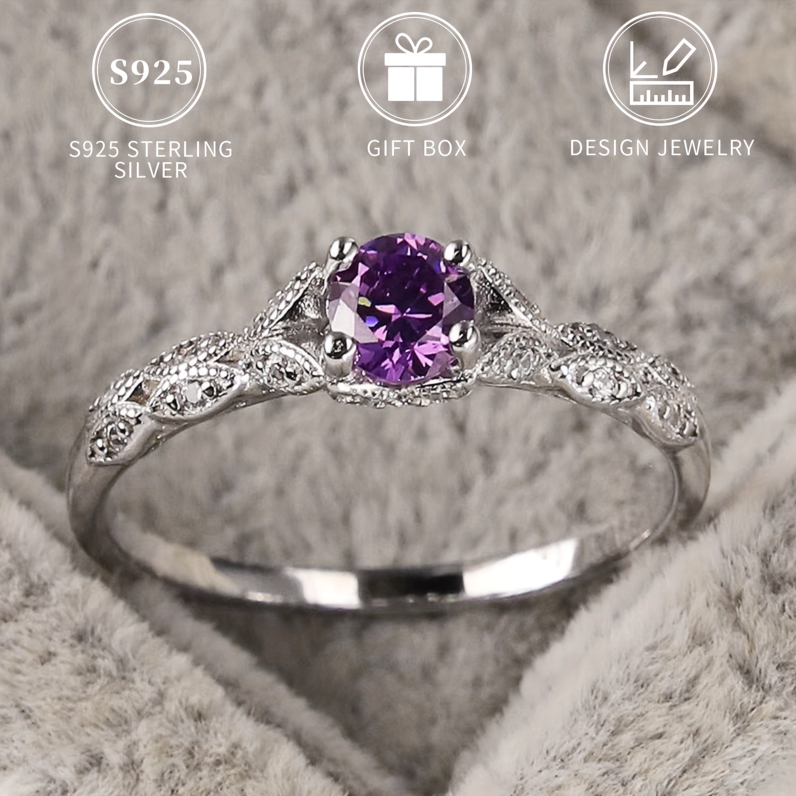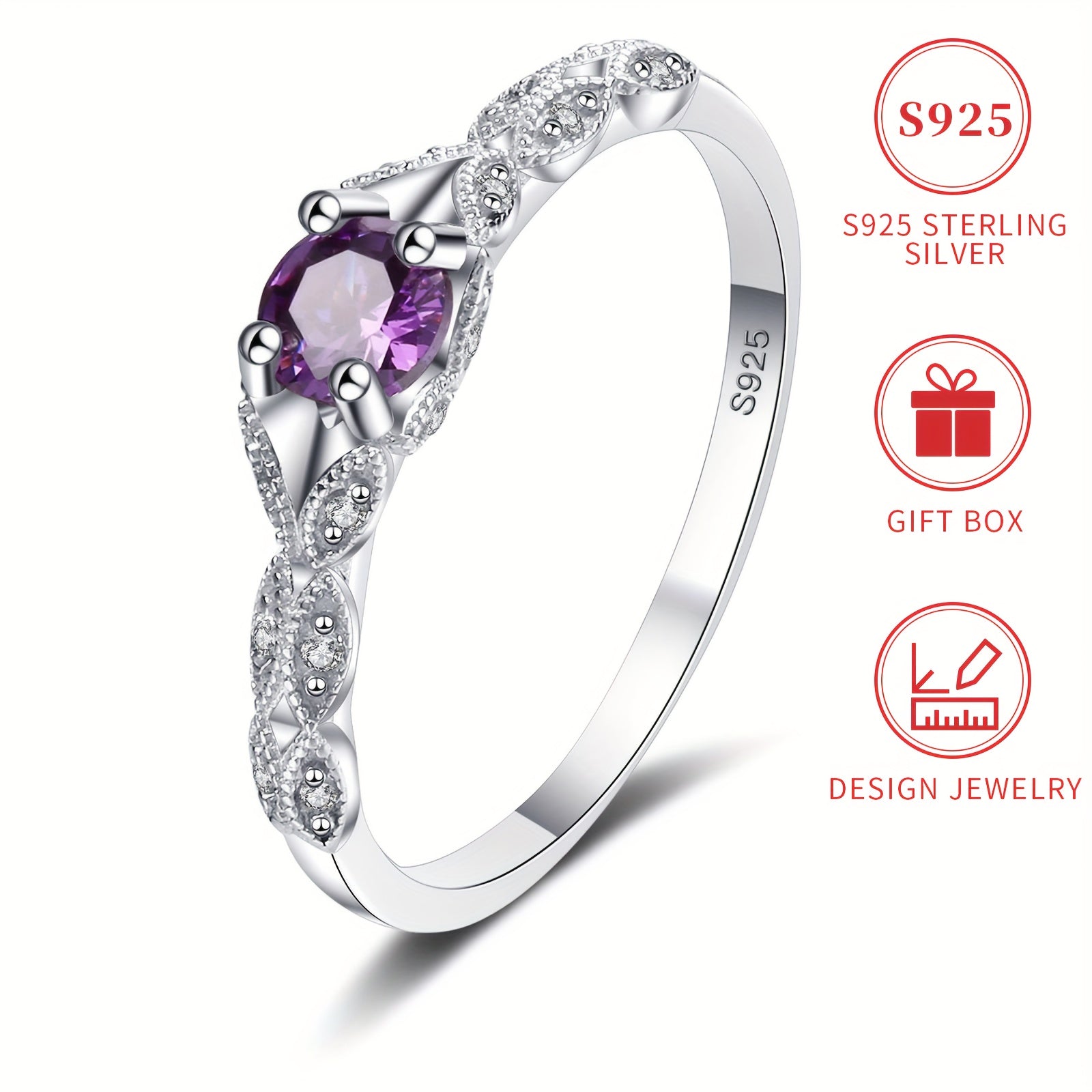 This elegant ring features a 925 pure silvery band with a beautiful purple gemstone, making it perfect for brides and daily wear. The hypoallergenic and nickel-free design ensures comfort and durability.