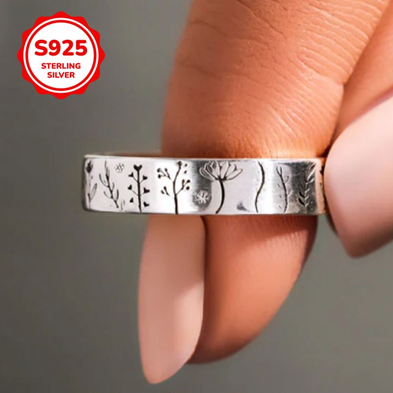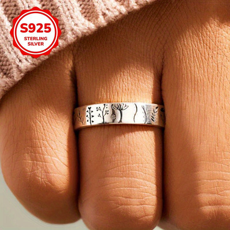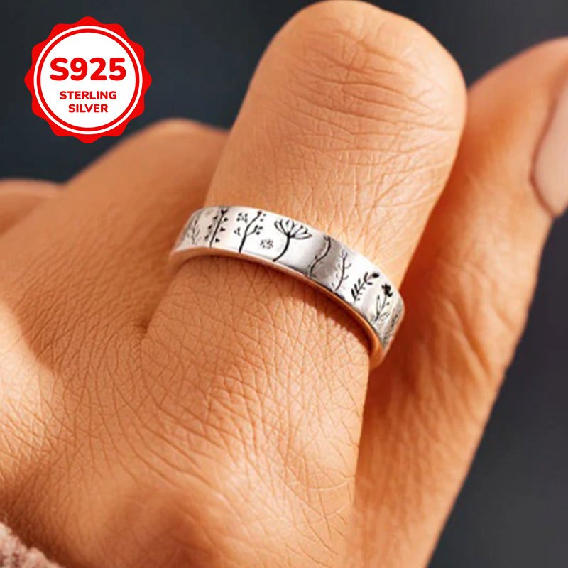 This wide band ring features a beautifully carved flower and tree pattern in a bohemian style. Made of high-quality 925 sterling silver, this retro ring is perfect for daily wear.