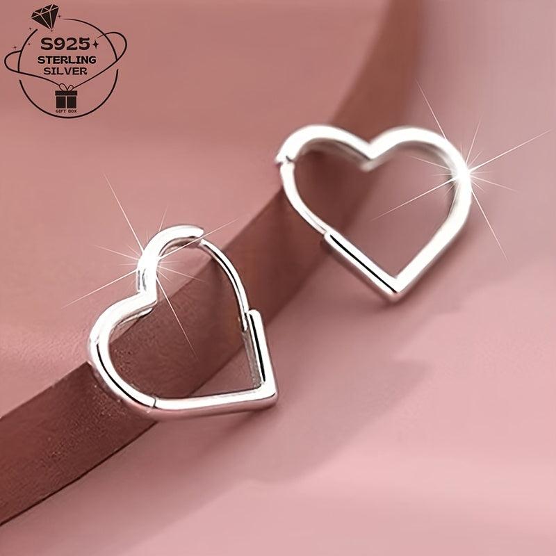 925 Sterling Silver Heart Shaped Ear Clasps Women'S Earrings
