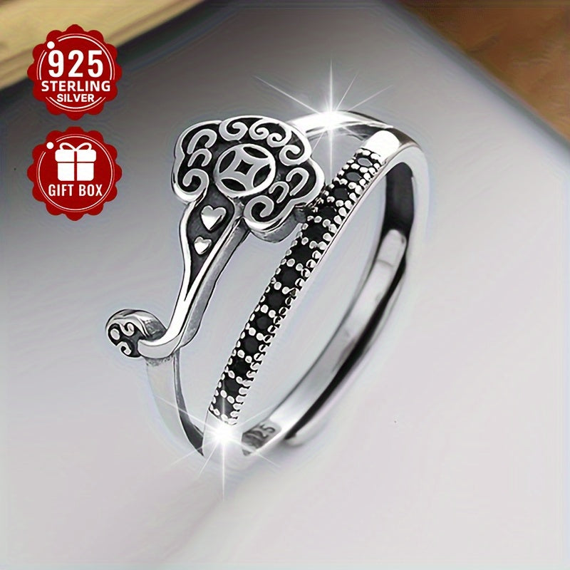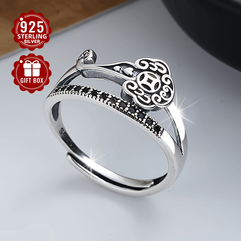 This 925 sterling silver band ring symbolizes good fortune, wealth, and peace. Suitable for both men and women, this stylish and unique piece adds a touch of elegance to any outfit.