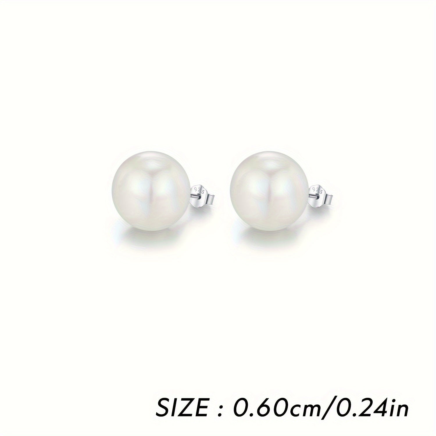 These classic stud earrings are made of 925 sterling silver with artificial pearl. They are rhodium plated for a shiny look. Available in 5 different sizes, these earrings make a perfect birthday gift for women.