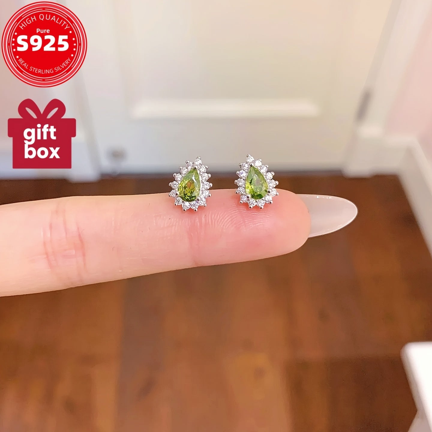 These elegant stud earrings feature green teardrop shaped synthetic Zirconia in a French retro court setting. Perfect for daily wear, this delicate design adds a touch of sophistication to any outfit.
