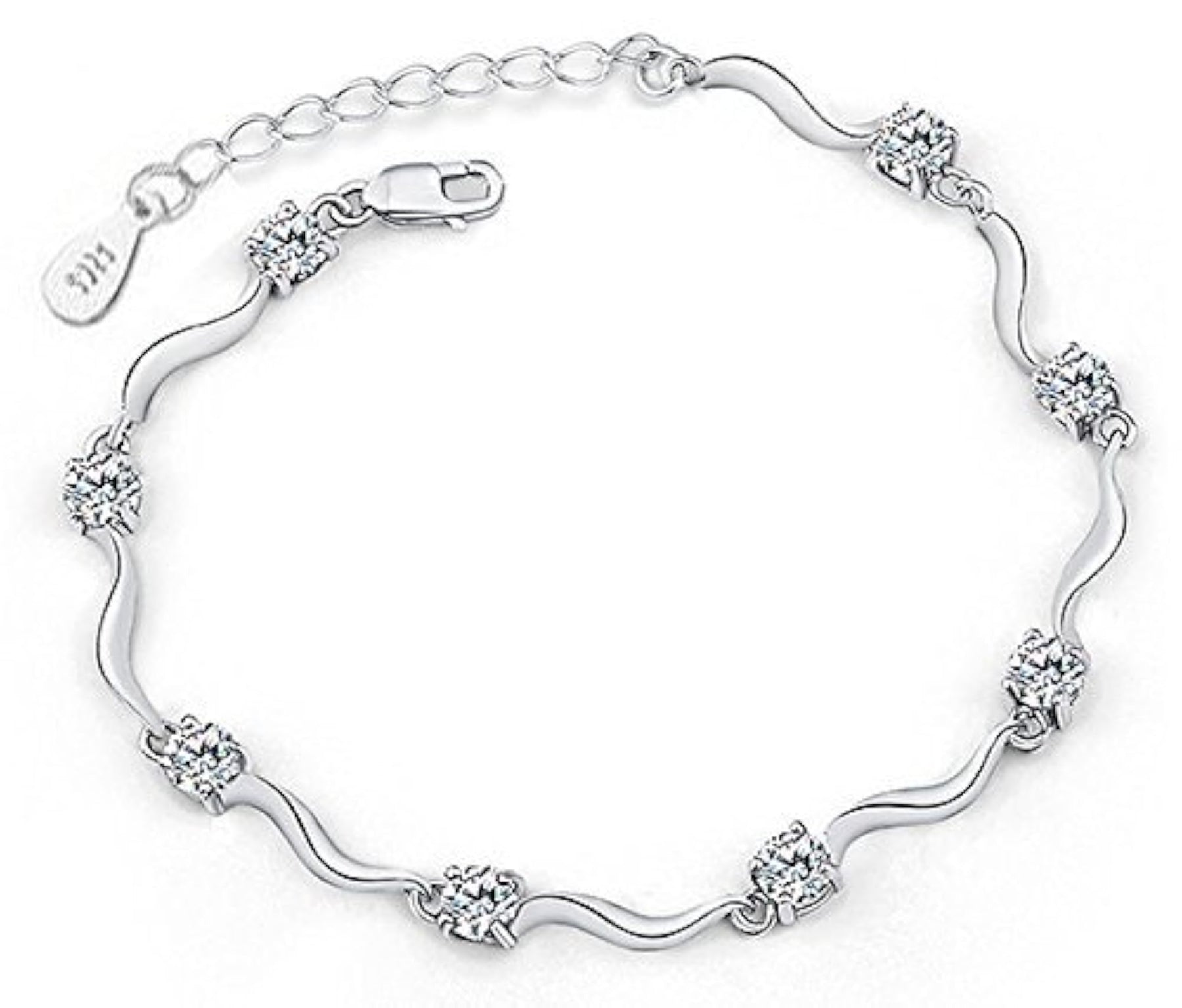 Elegant silver plated chain bracelet with high-quality AAA crystals, perfect for adding a touch of sparkle to any outfit.