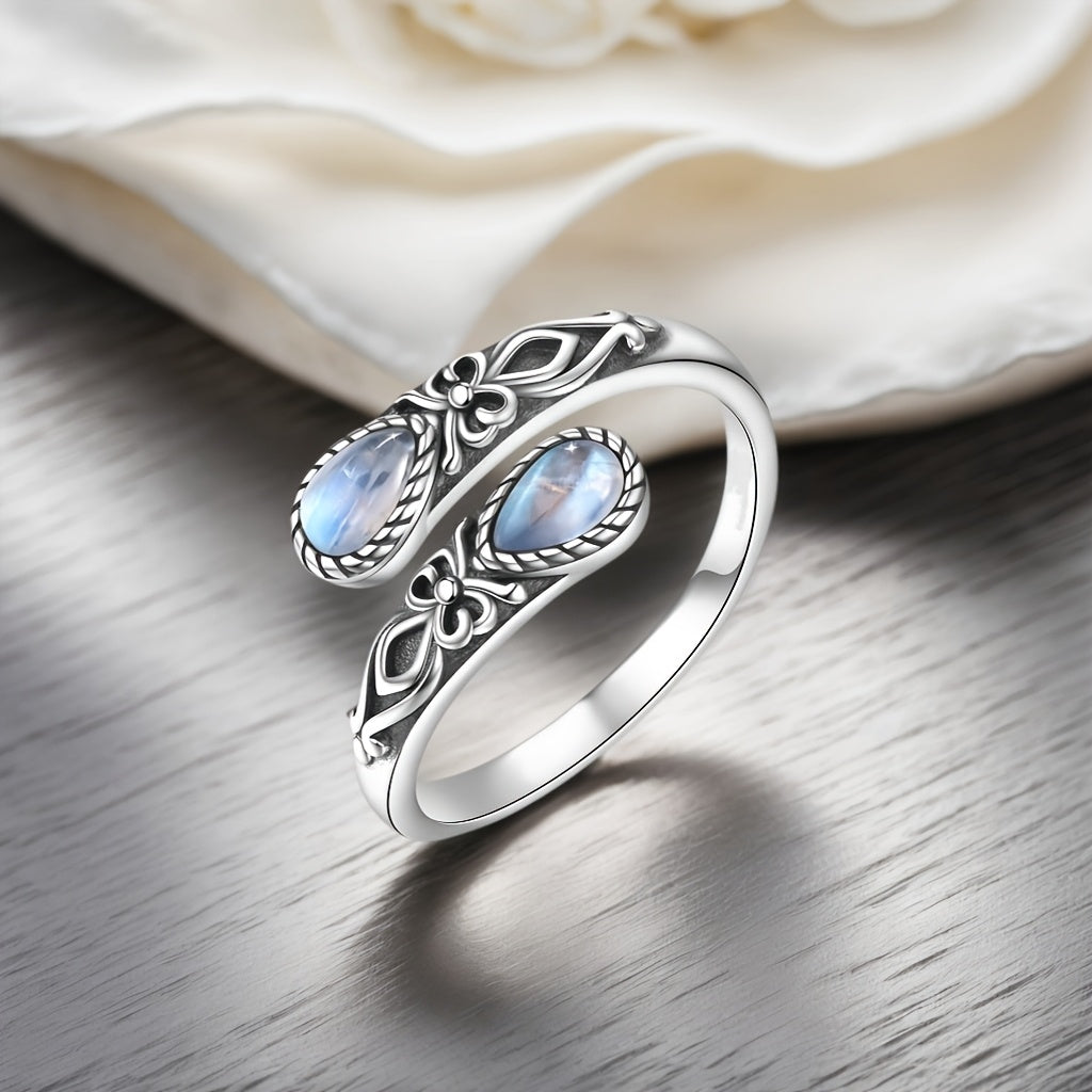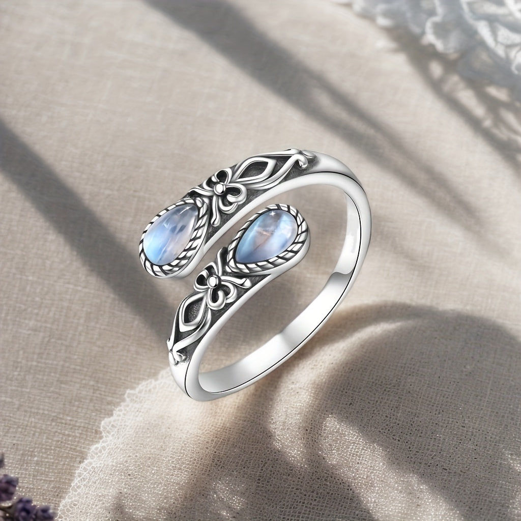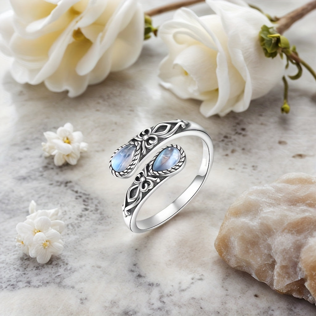 This adjustable open copper ring features a bohemian style intertwined band with synthetic stones. Perfect for everyday wear or parties, this ring makes a great gift for mothers.