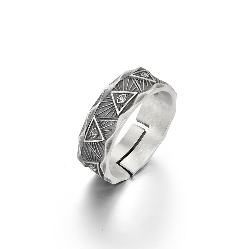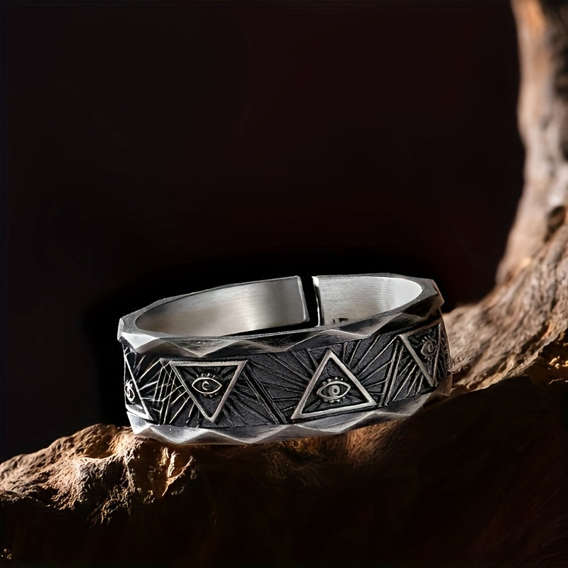 This vintage ring features God's Eye & Horus Eye design with an antique finish. It's adjustable in size and perfect for everyday wear or special occasions. Makes a great Thanksgiving or Christmas gift.