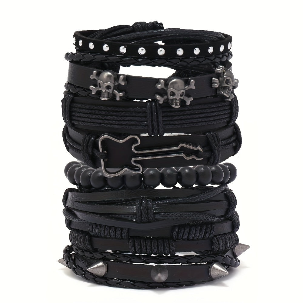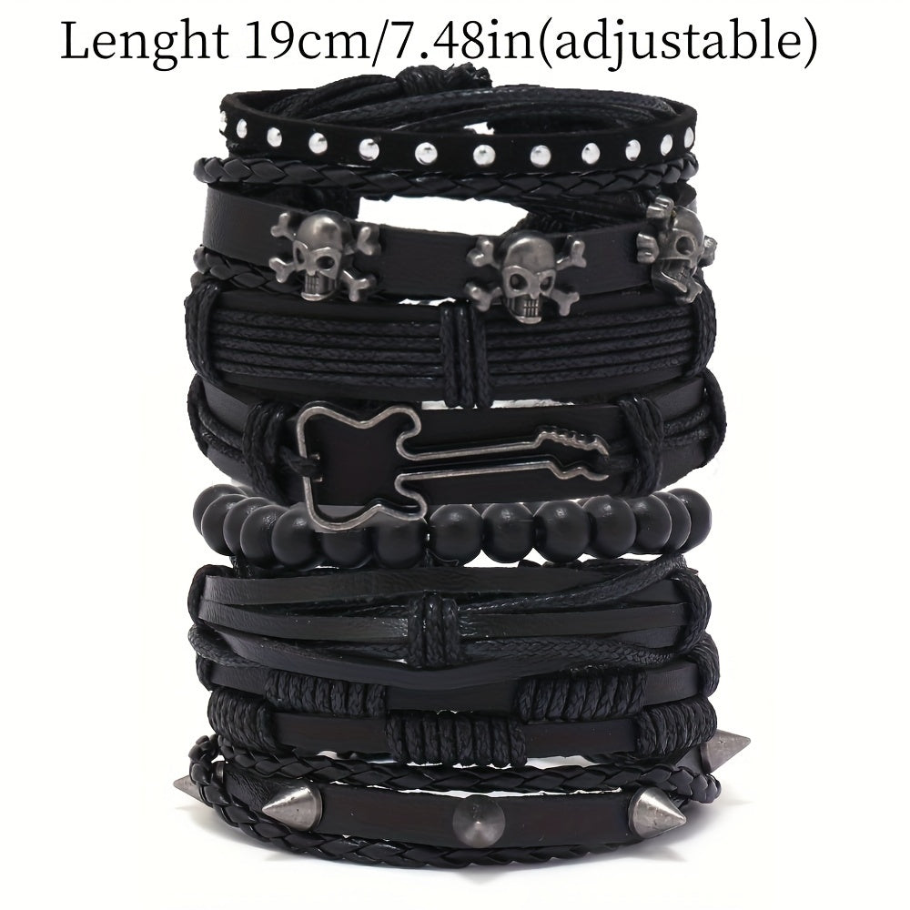 This set includes 8 adjustable faux leather bracelets in a punk style cuff design. Perfect for men and women to wear daily for a stylish look.