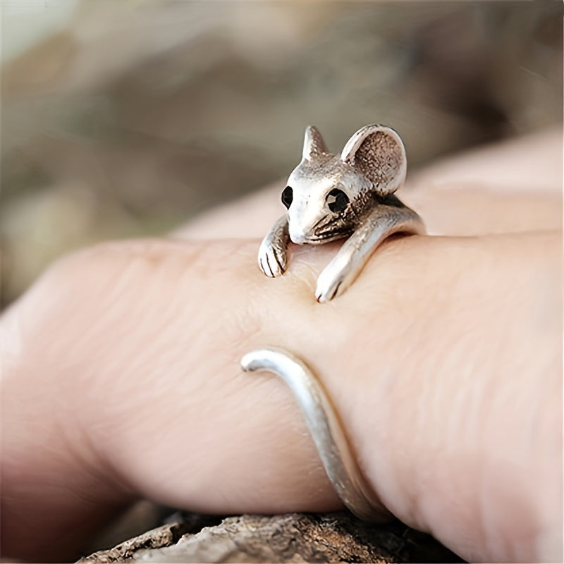 This unique unisex ring features a small mouse design with synthetic zircon, perfect for both men and women.