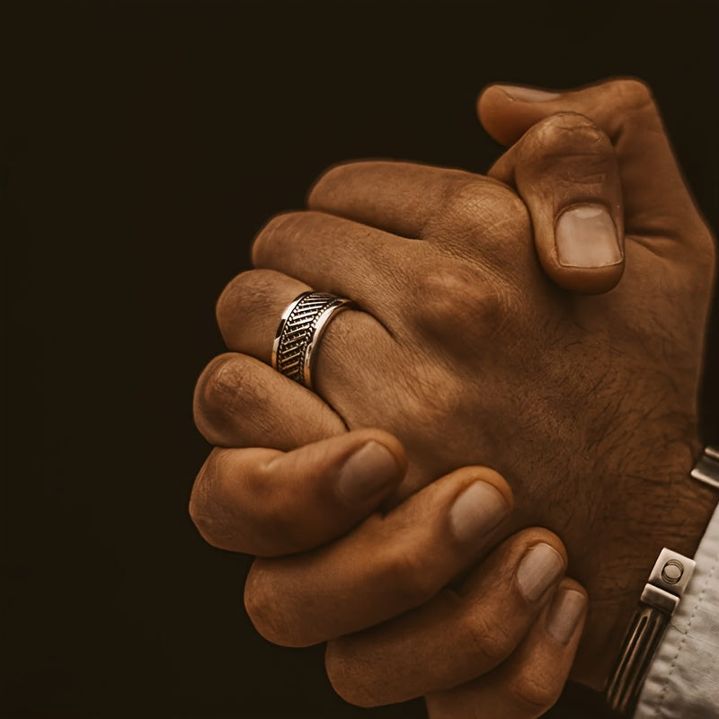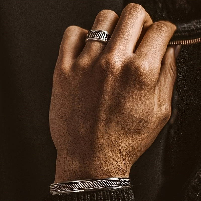 Vintage minimalist ring made of copper with a textured detail, perfect for Father's Day, Thanksgiving, or Christmas gifts. Adjustable sizing adds versatility and style to any outfit.