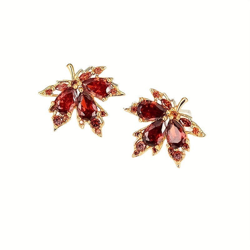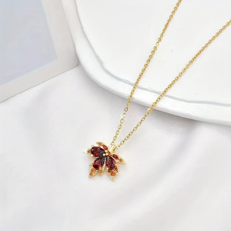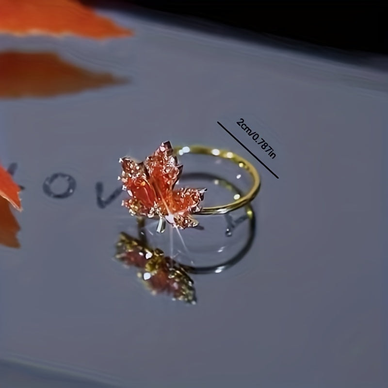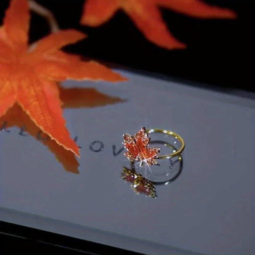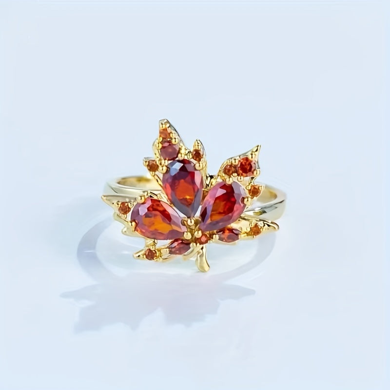This set includes an adjustable ring, necklace, and earrings featuring a unique red leaf design with artificial diamond accents. Suitable for men and women.