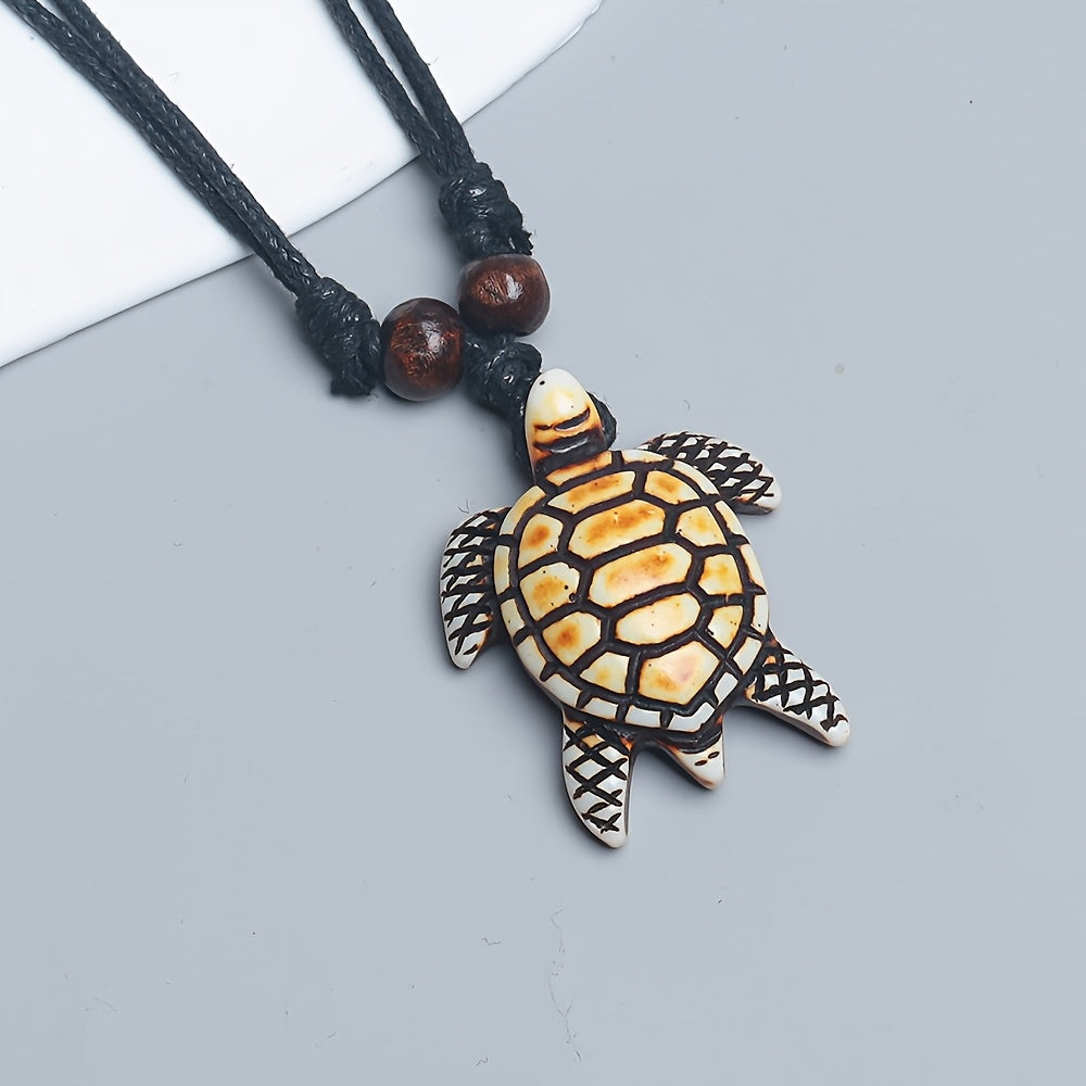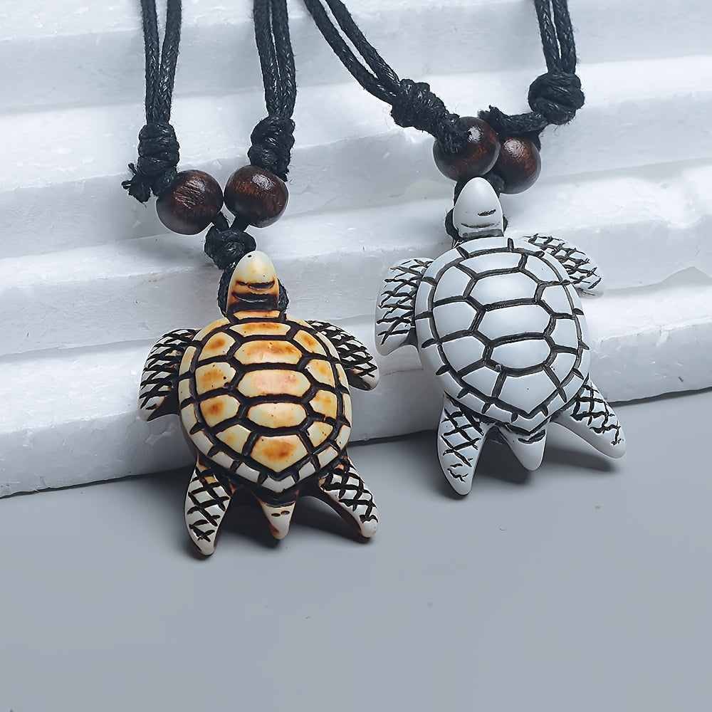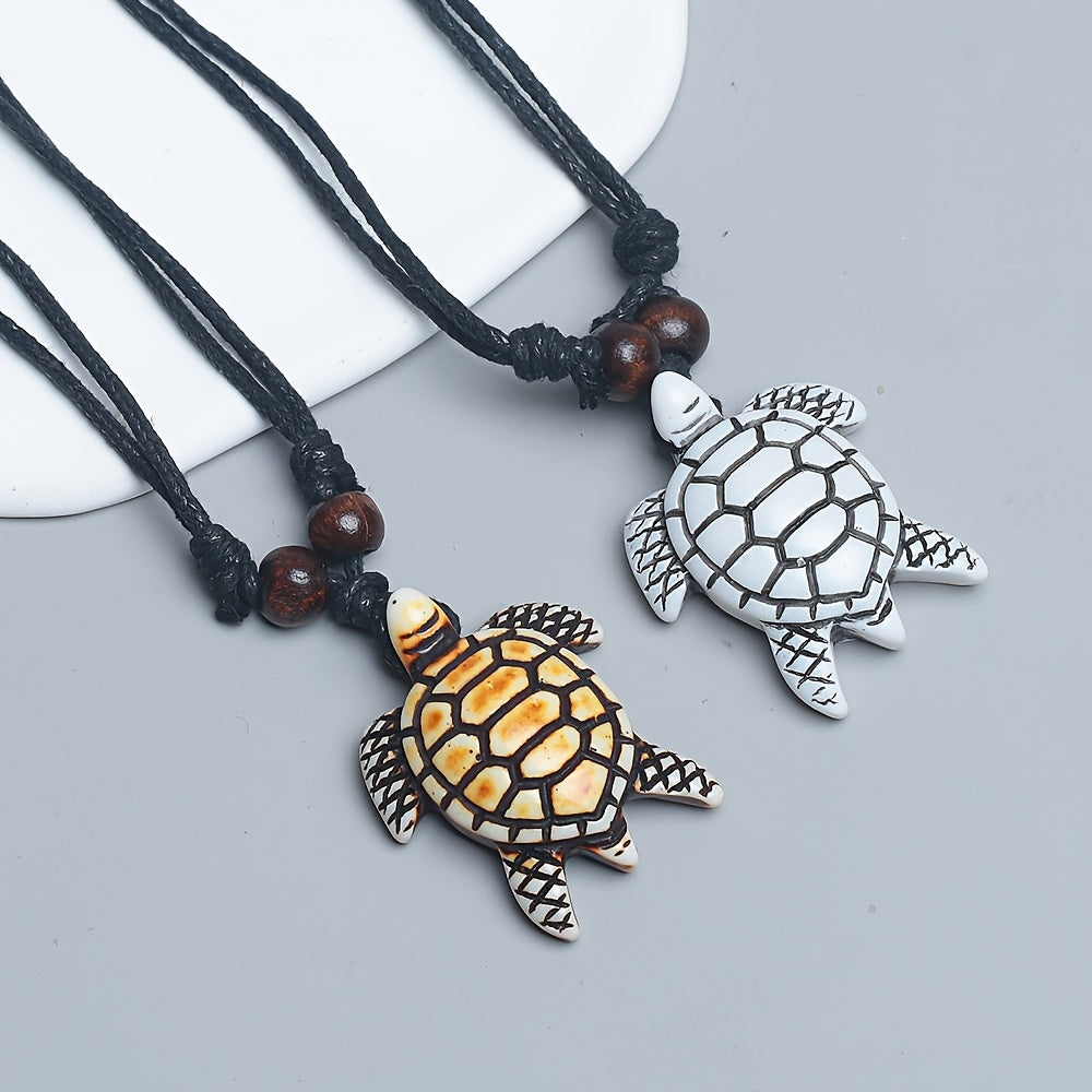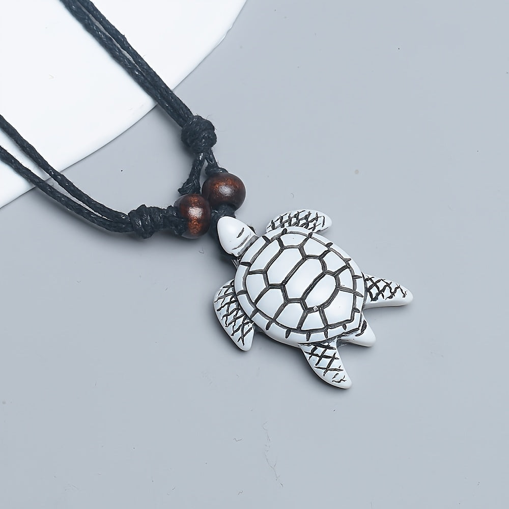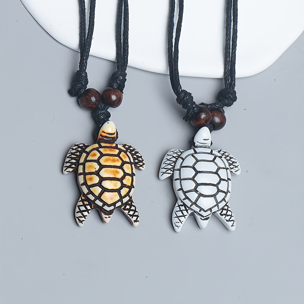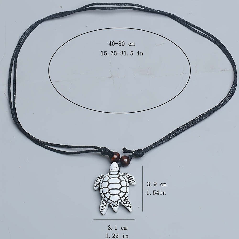 Embrace the beauty of the ocean with this adjustable Hawaiian sea turtle pendant necklace. Handcrafted from resin, this surfer necklace features a braided rope, ideal for couples or sea turtle enthusiasts.