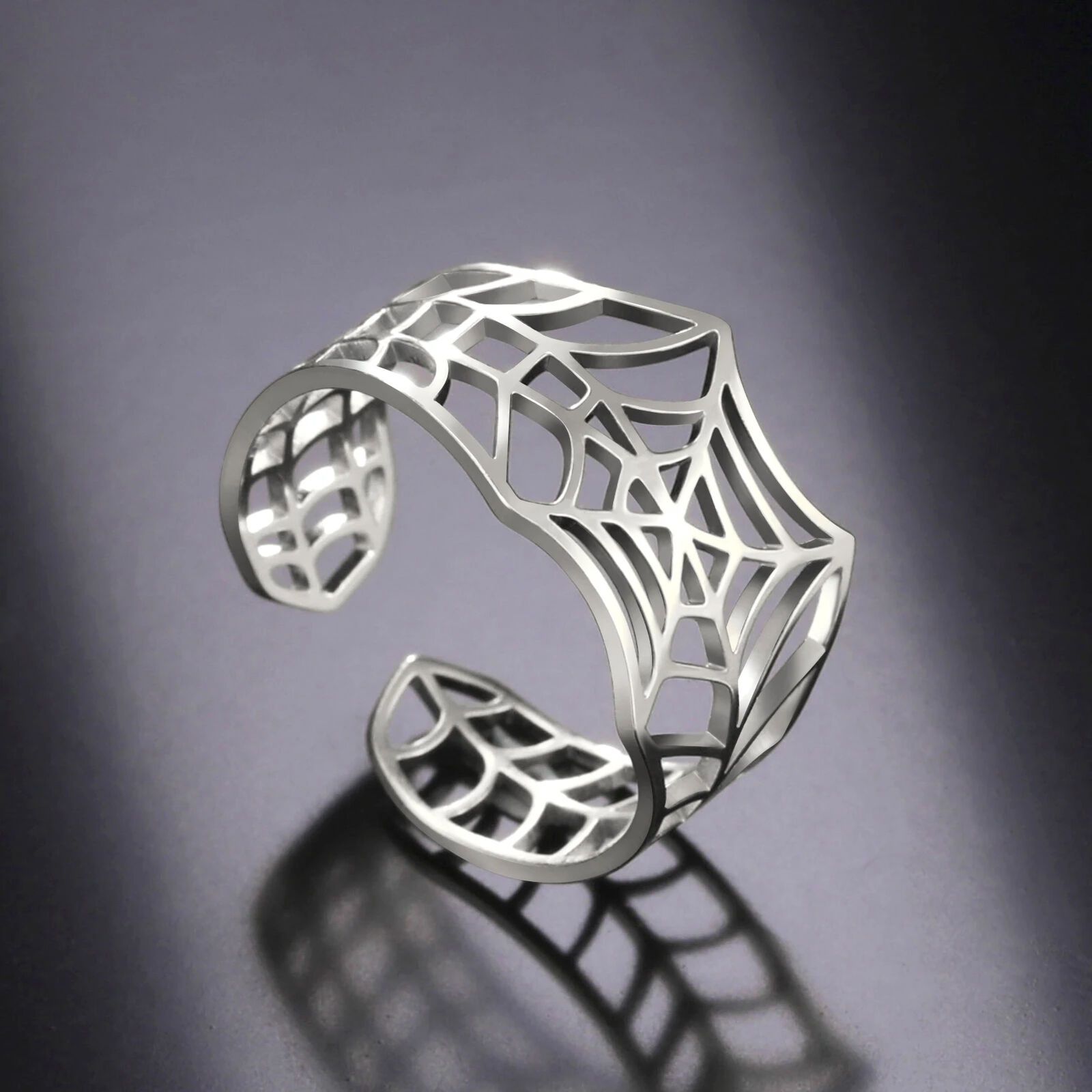 This adjustable spider web open ring is a perfect accessory for anyone looking to add a touch of gothic style to their Halloween outfit. Made of stainless steel, it is durable and versatile.