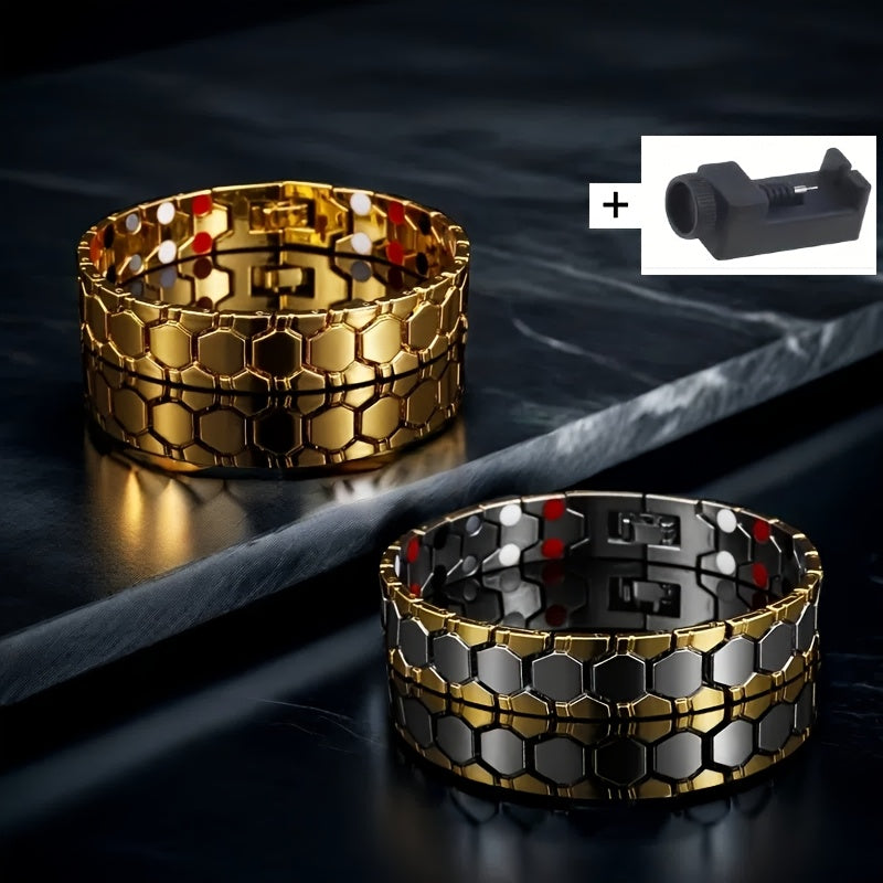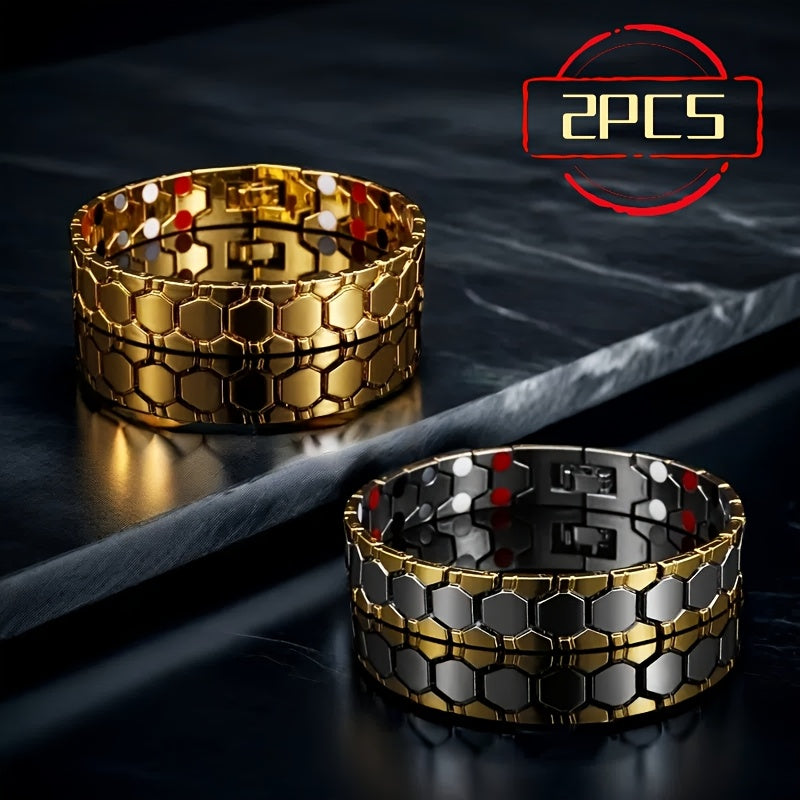 This fashionable bracelet and bangle set is a unique decorative surprise gift that features an adjustable strap style open cuff design. It is perfect for both men and women.