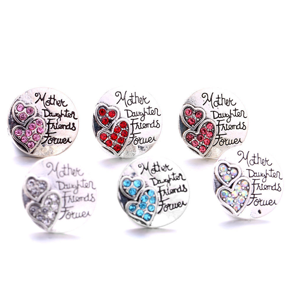 This alloy snap button is adorned with colorful rhinestones and a heart pattern, perfect for creating custom bracelets or necklaces. Add a touch of elegance to your DIY accessories.