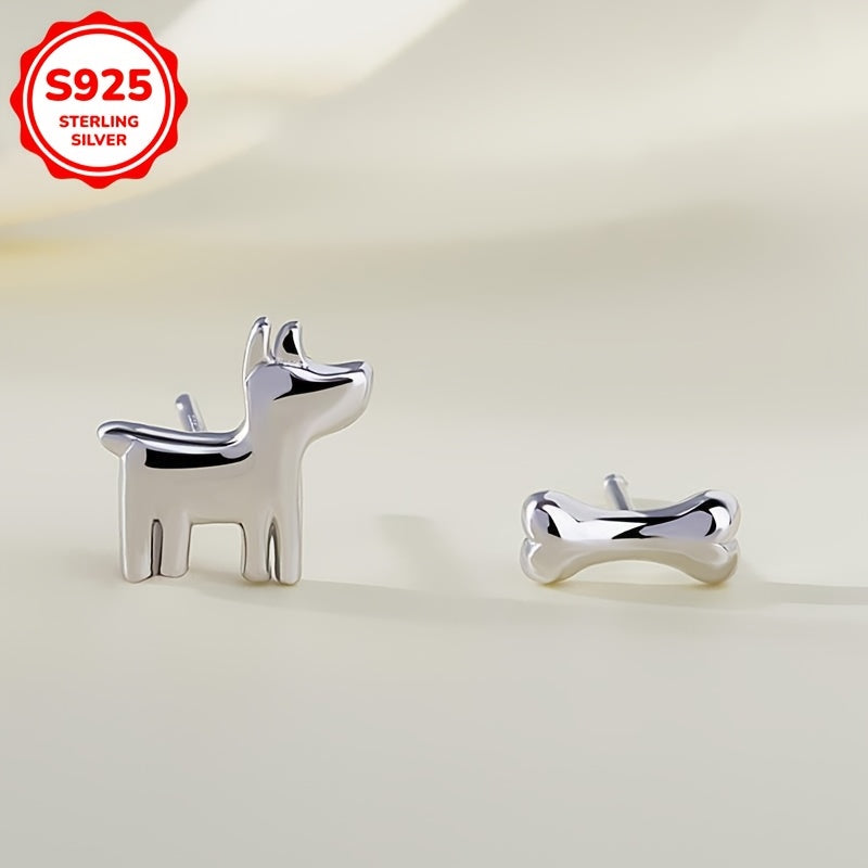 These trendy earrings are perfect for daily wear. Show off your playful side with the creative asymmetrical design featuring a puppy and bone. Made from 925 silicone, they are lightweight and comfortable for all-day wear.