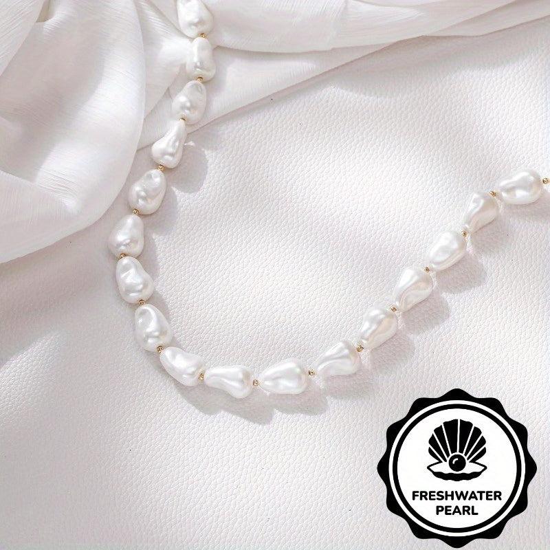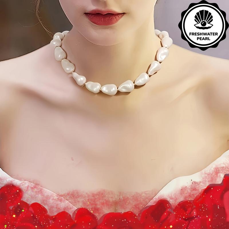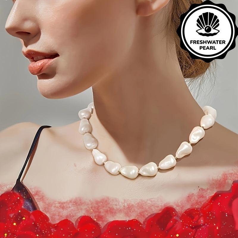 Elegant and unique, this irregular freshwater pearl necklace is perfect for 11 festive occasions. A vintage jewelry gift for mothers.