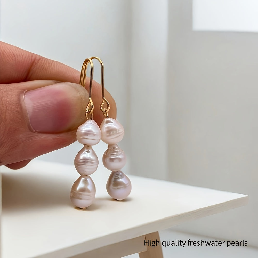 Elegant freshwater pearl earrings with a classic design. Perfect for music festivals, banquets, or everyday wear. These dangle earrings are crafted with high-quality materials and will elevate any outfit.