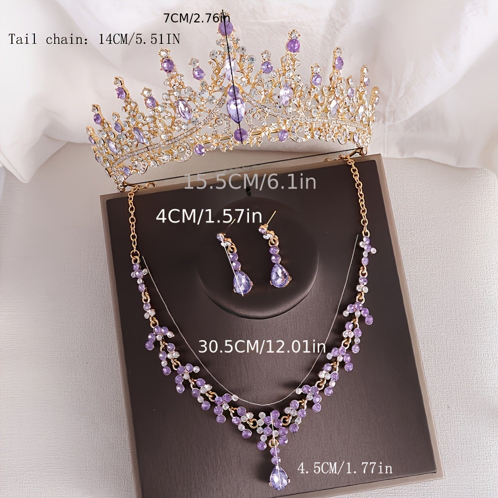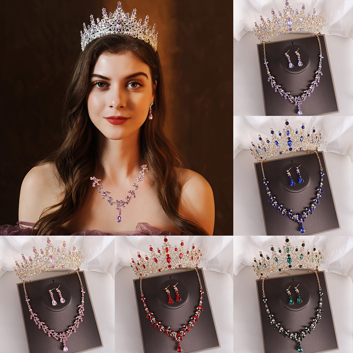 Stunning vintage-style jewelry set perfect for weddings or special occasions. Features intricate rhinestone detailing and a regal crown pendant. Elevate your bridal look with this exquisite set.