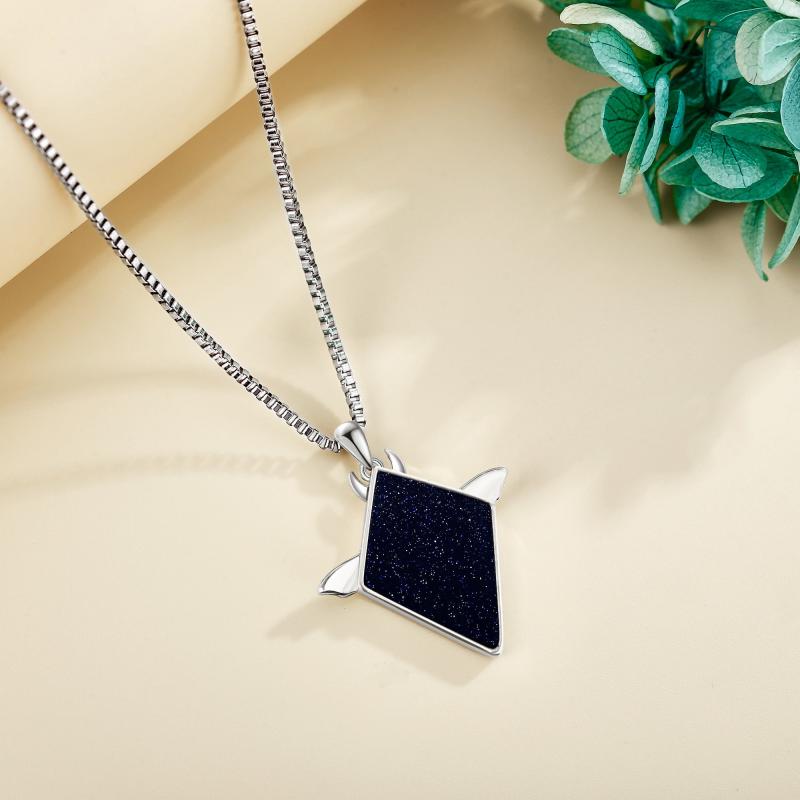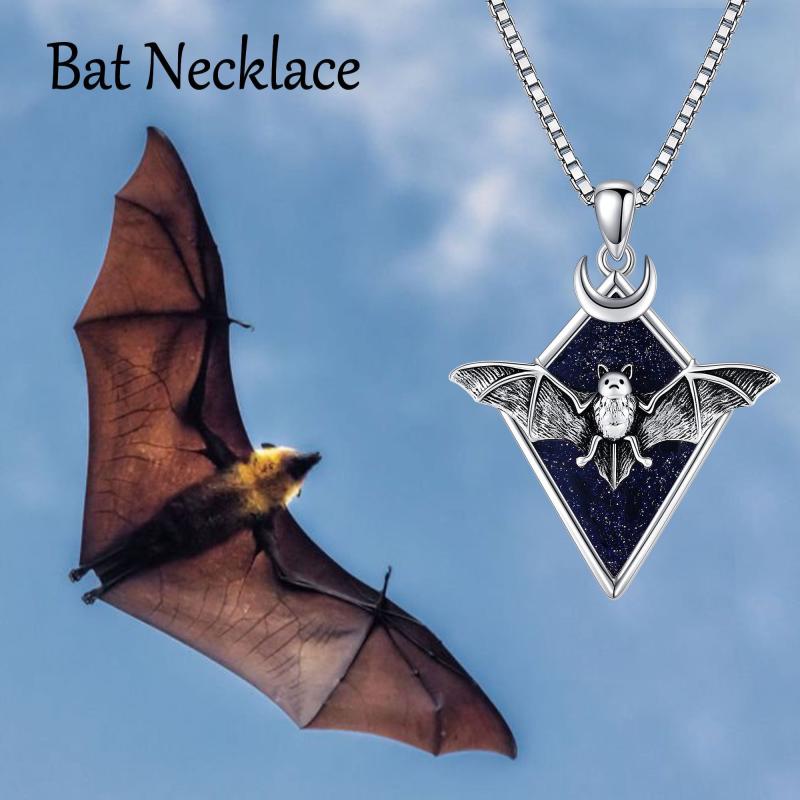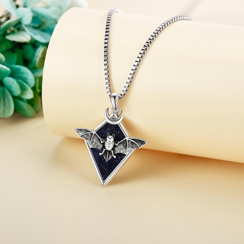 Bat Necklace Sterling Silver Synthetic Sandstone Bat Pendant Halloween Jewellery