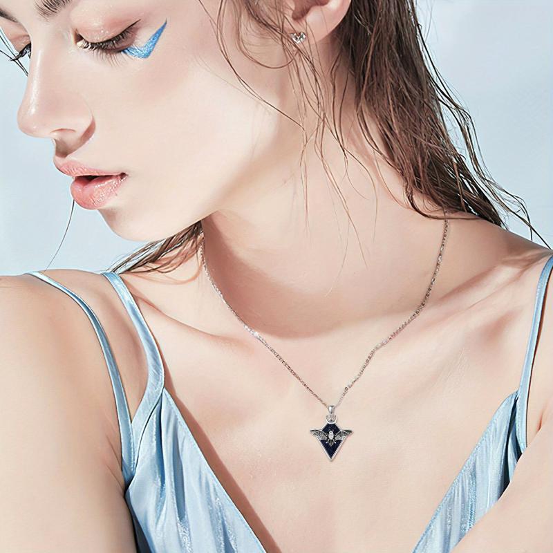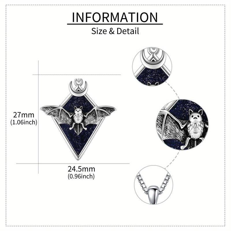 This stunning bat necklace features a sterling silver synthetic sandstone bat pendant, perfect for Halloween and any spooky occasion. A unique and elegant piece of jewellery for women.