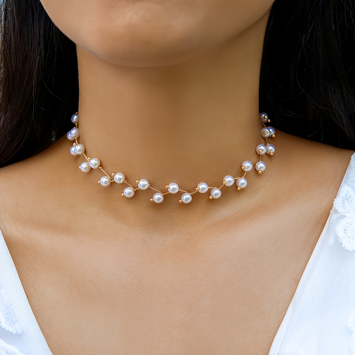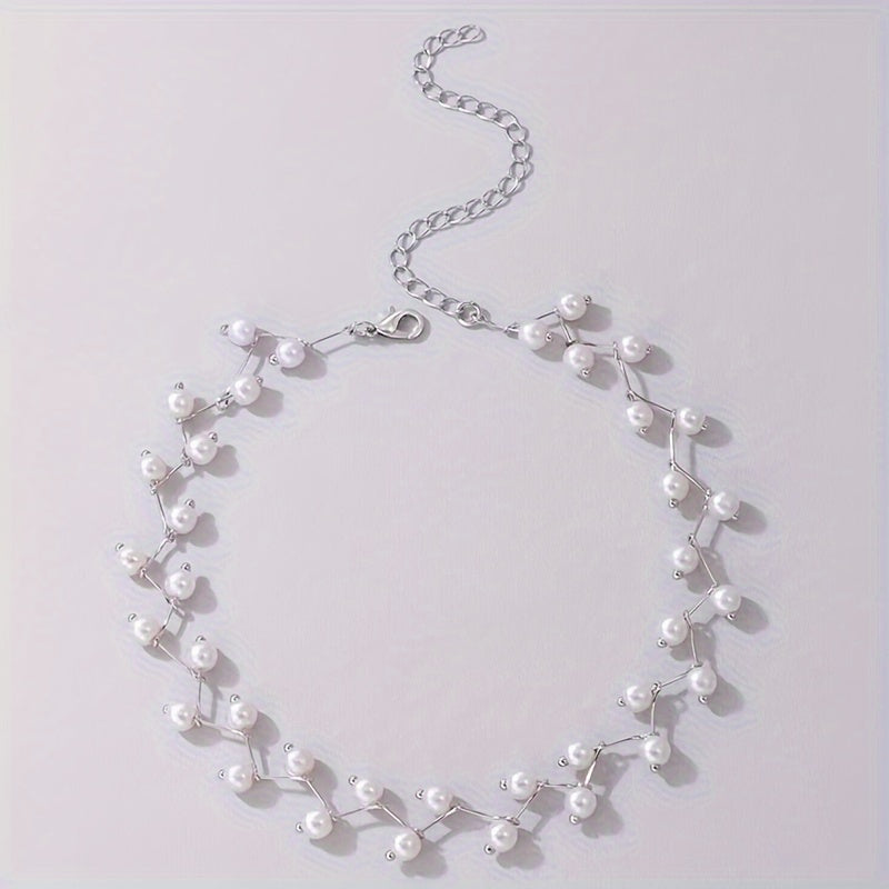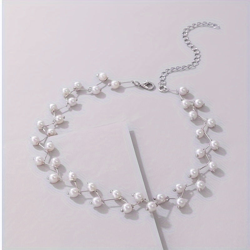 Elegant faux pearl choker necklace designed for dance parties, gatherings, and Ramadan celebrations. Add a touch of beach-inspired style to any outfit.
