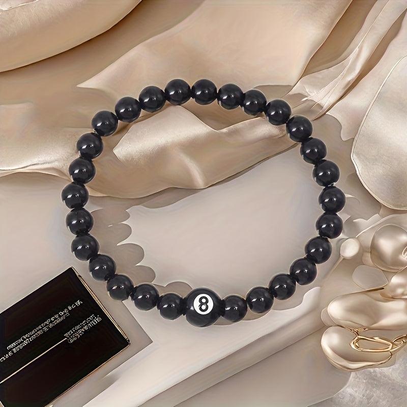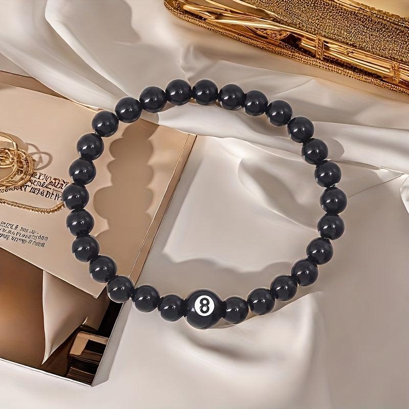 This stylish men's bracelet features billiard element design with unique charm and high-end bead. The lucky number bracelet is a fashionable accessory for men.
