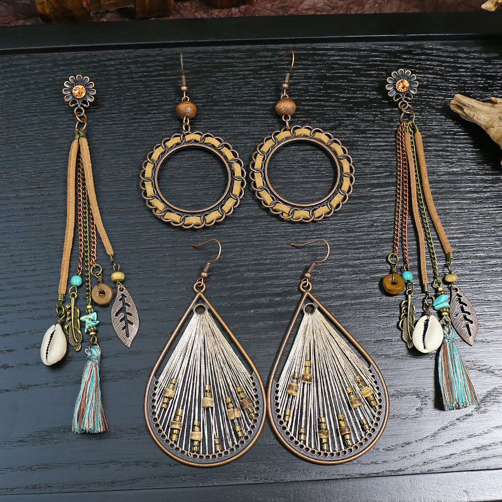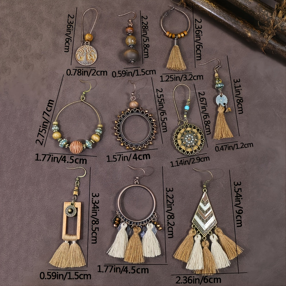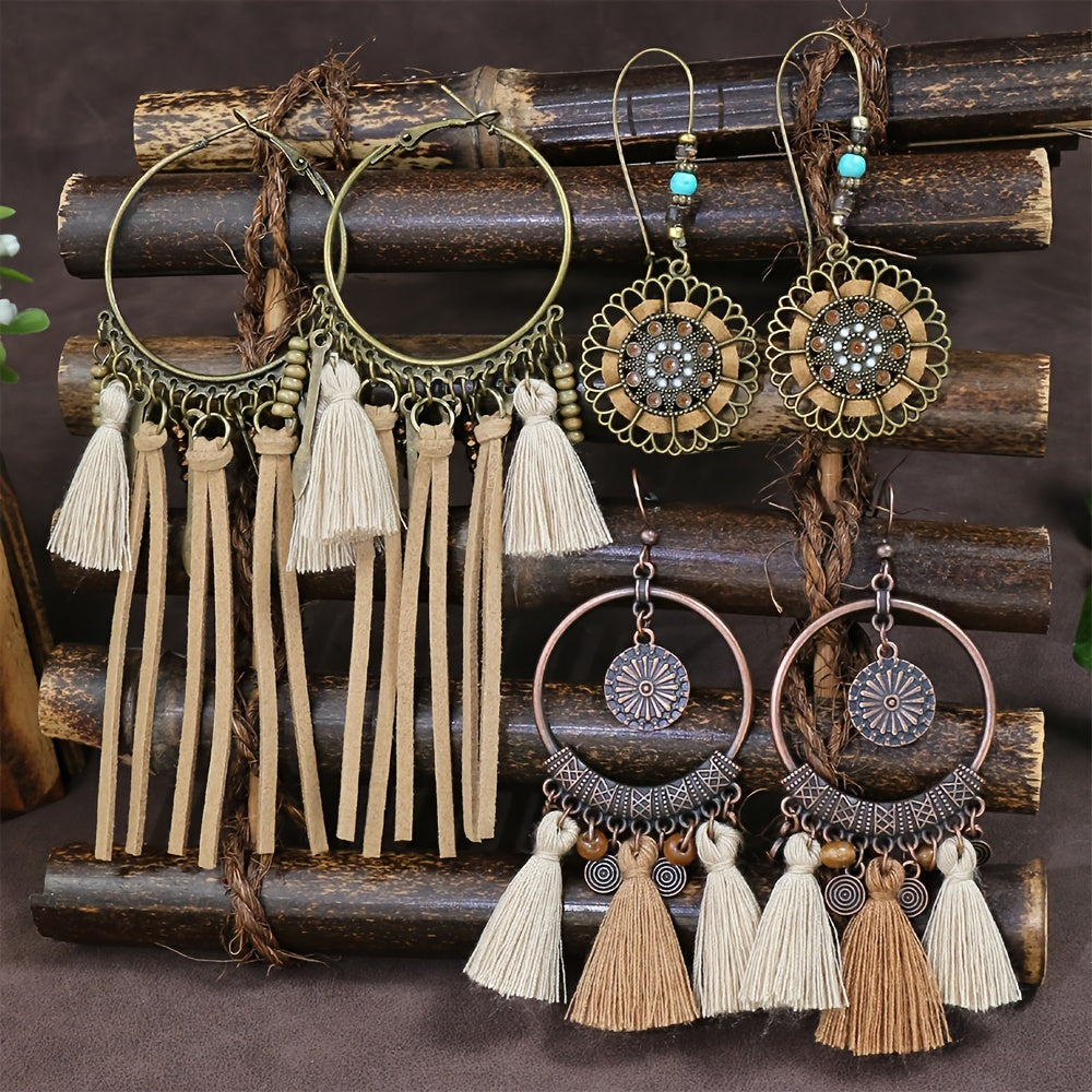 Embrace a retro ethnic look with these unique earrings featuring a life wood beaded design and multicolor tassels. The round hollow weave pendant is inlaid with turquoise, adding a touch of bohemian charm.