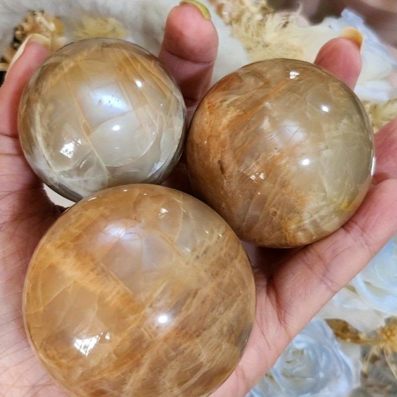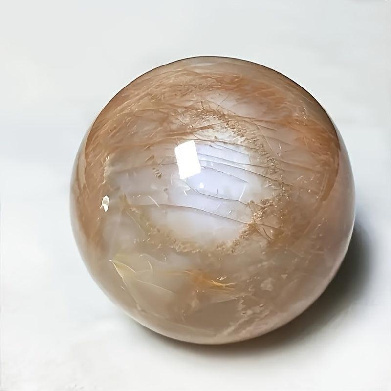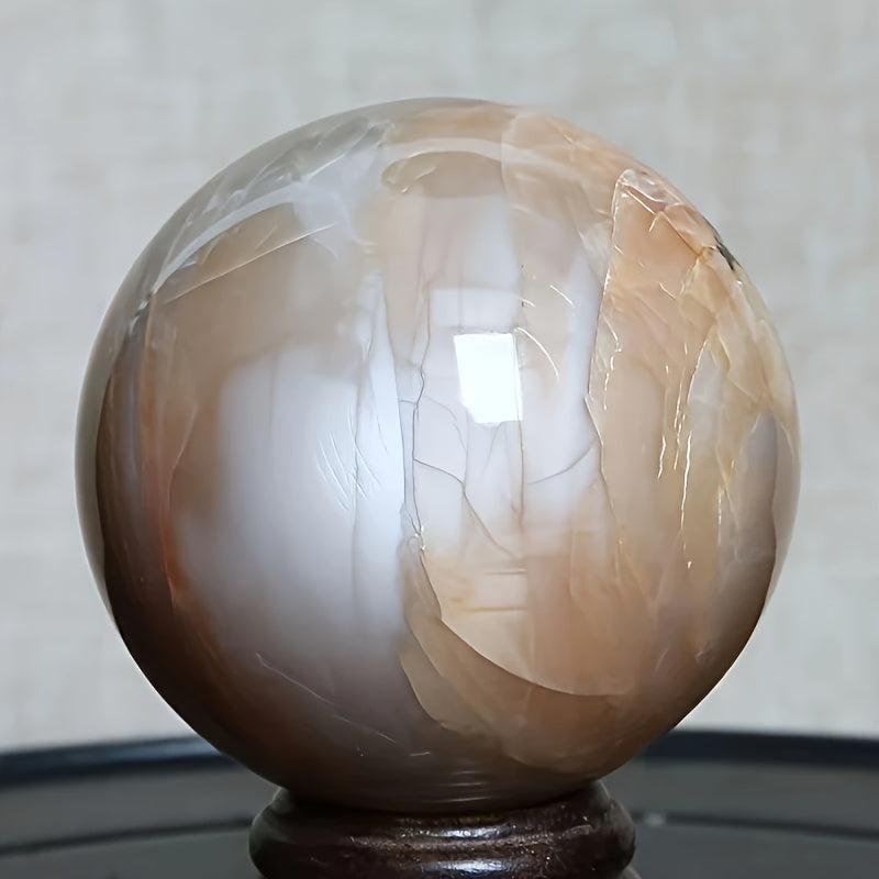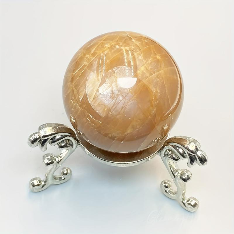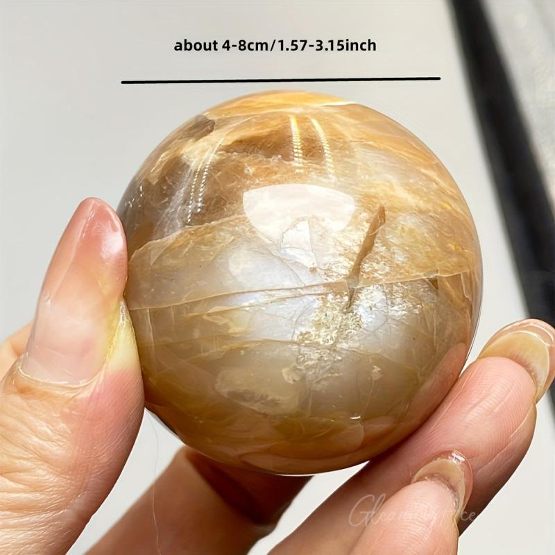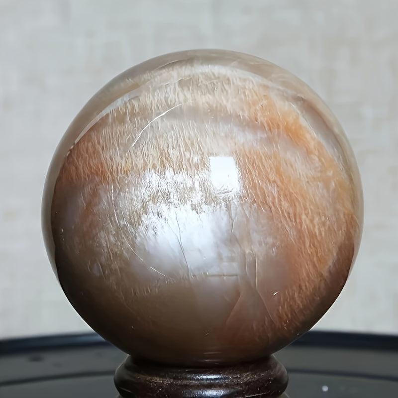 This large peach moonstone sphere is perfect for jewelry making, crafts, and unique home decor. Its vibrant orange color with marbling adds to its appeal. The natural stone crystal ball is a beautiful addition to any collection.