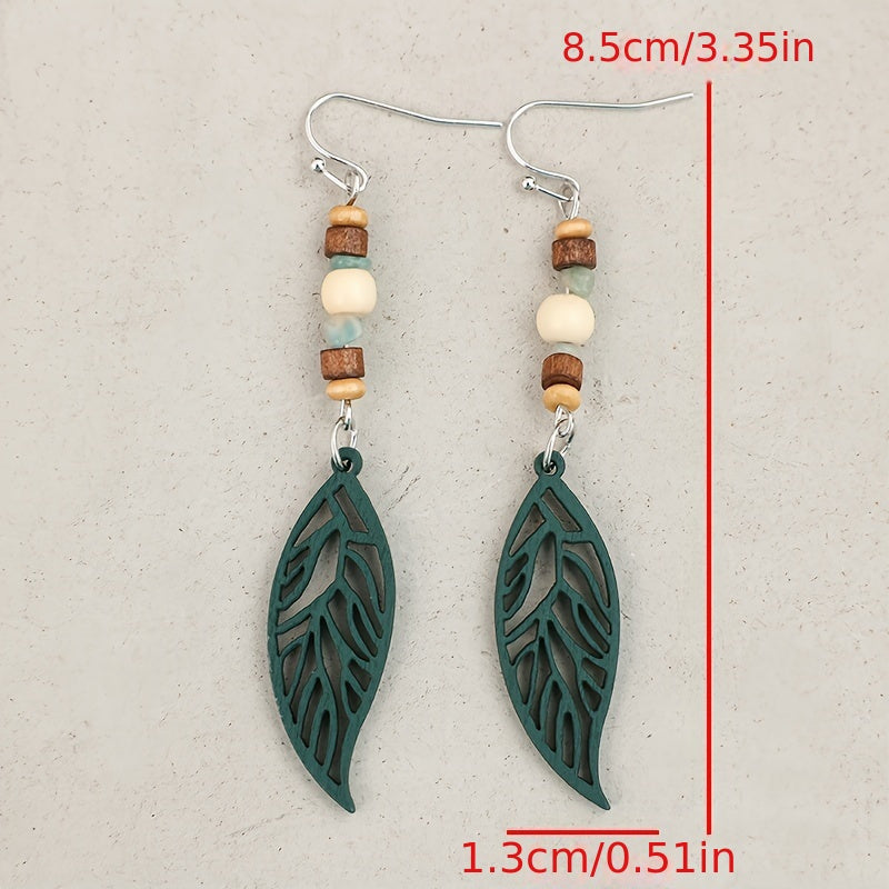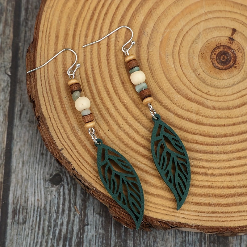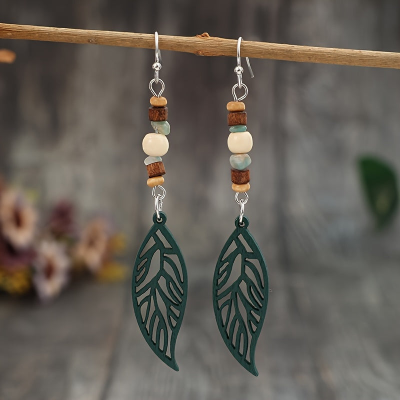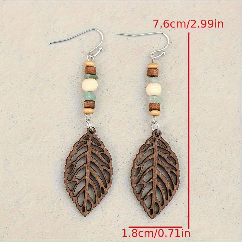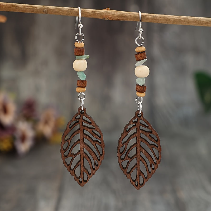 Chic bohemian style wooden earrings featuring intricate beaded geometric hollow design. Perfect cross border gift for any occasion.