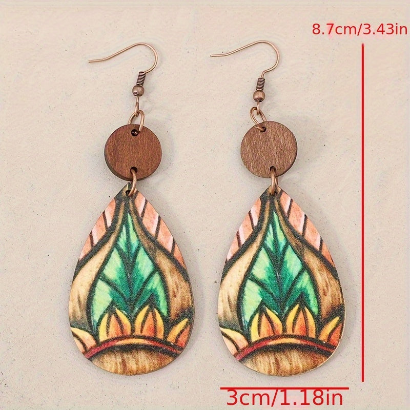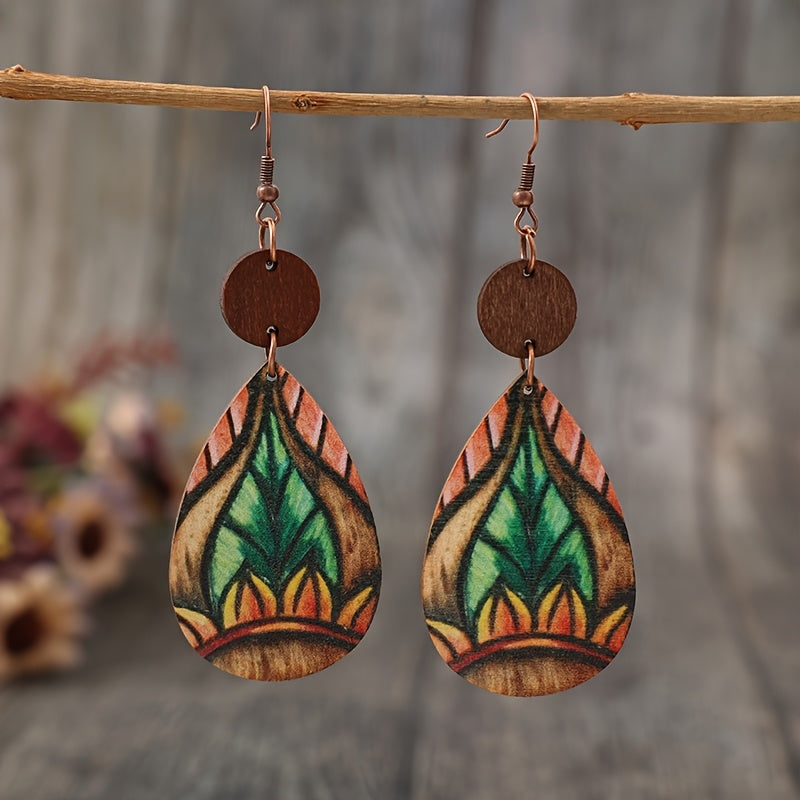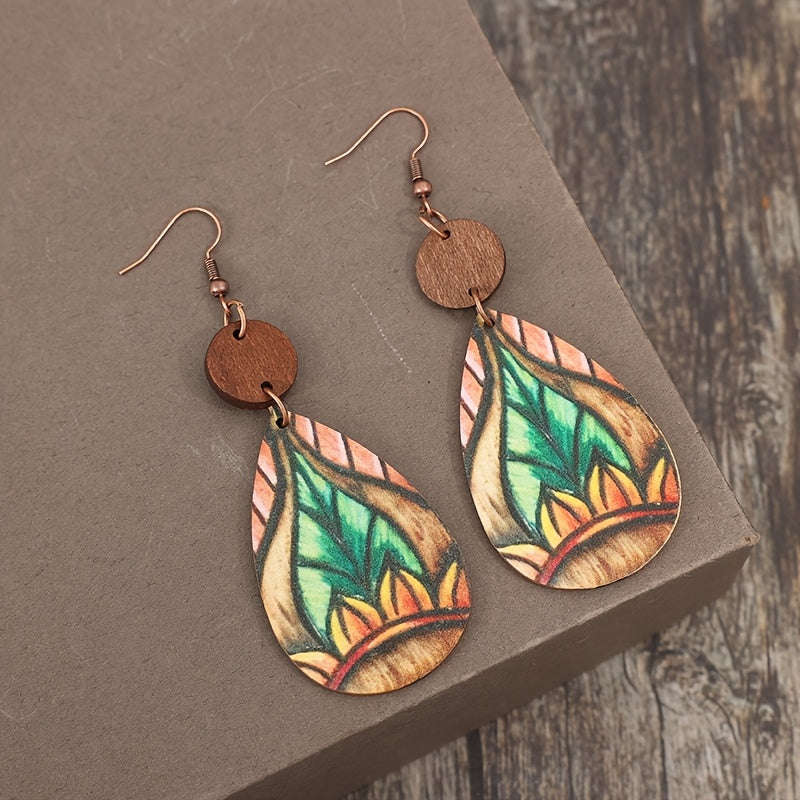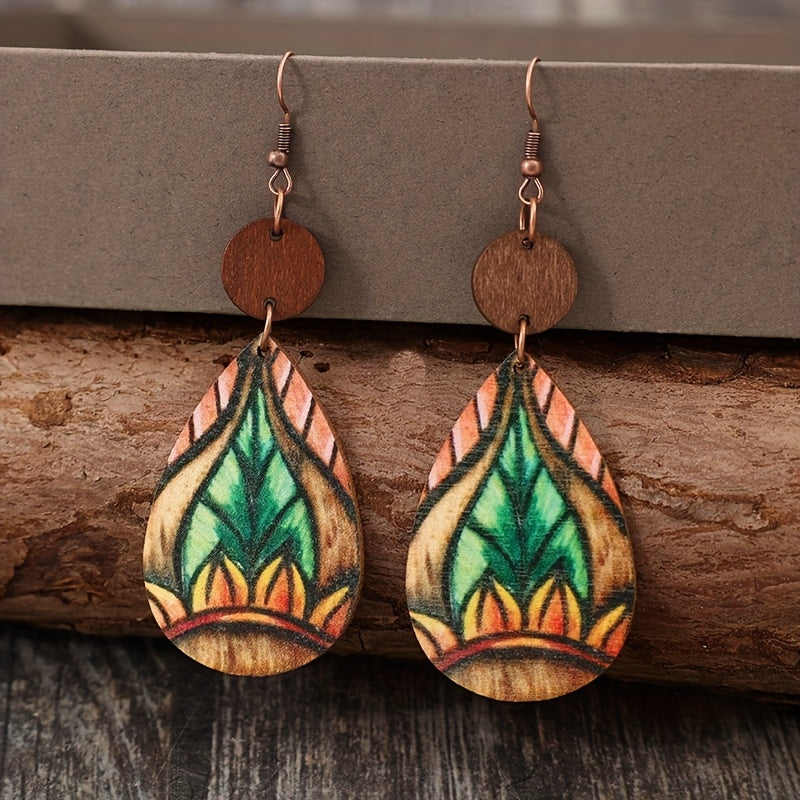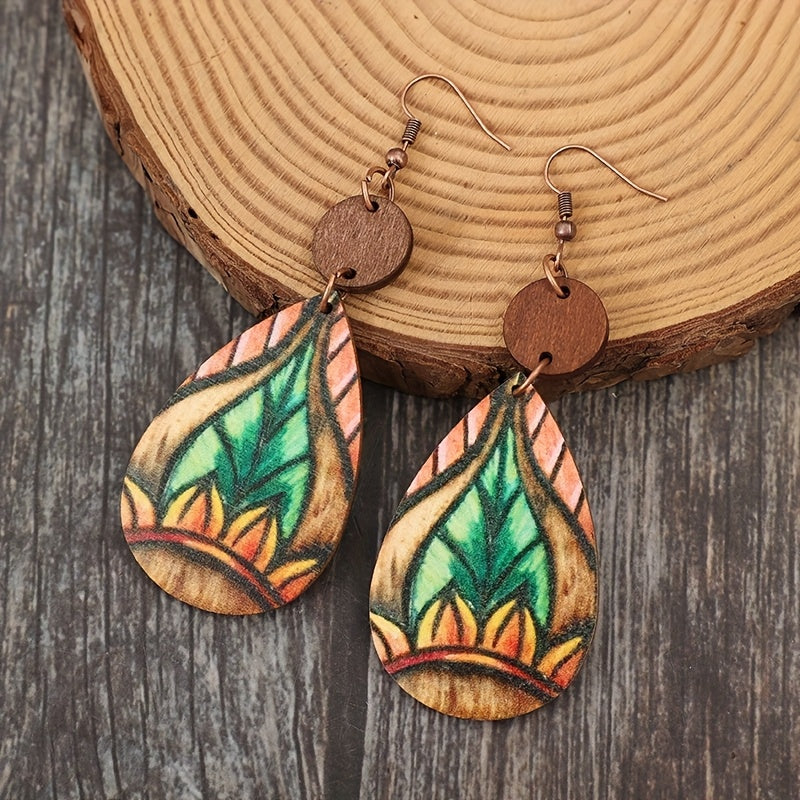 Add a touch of boho flair to your casual attire with these vintage teardrop earrings. Handcrafted from recycled wood with a floral print, these earrings feature iron hooks and earthy tones for a natural look.