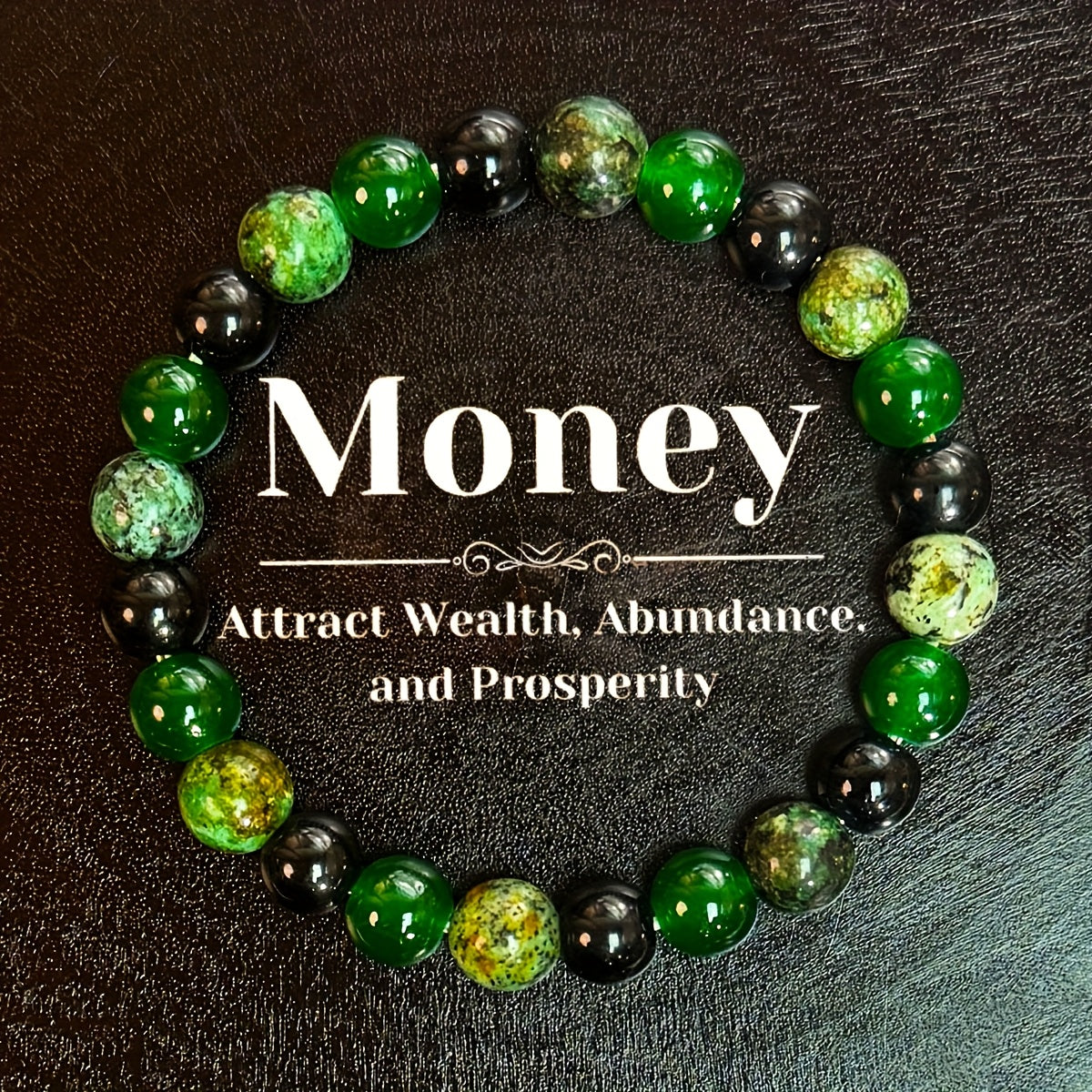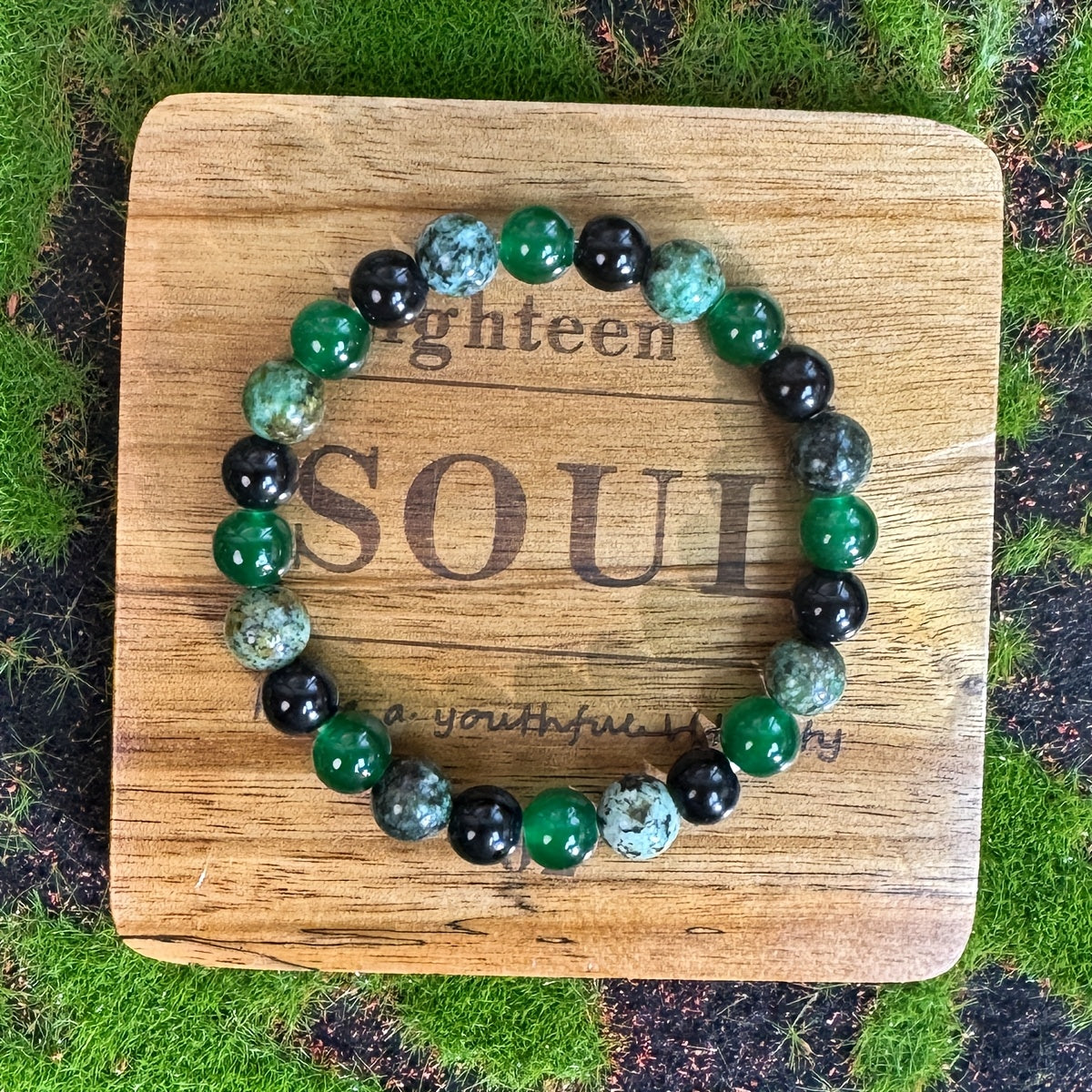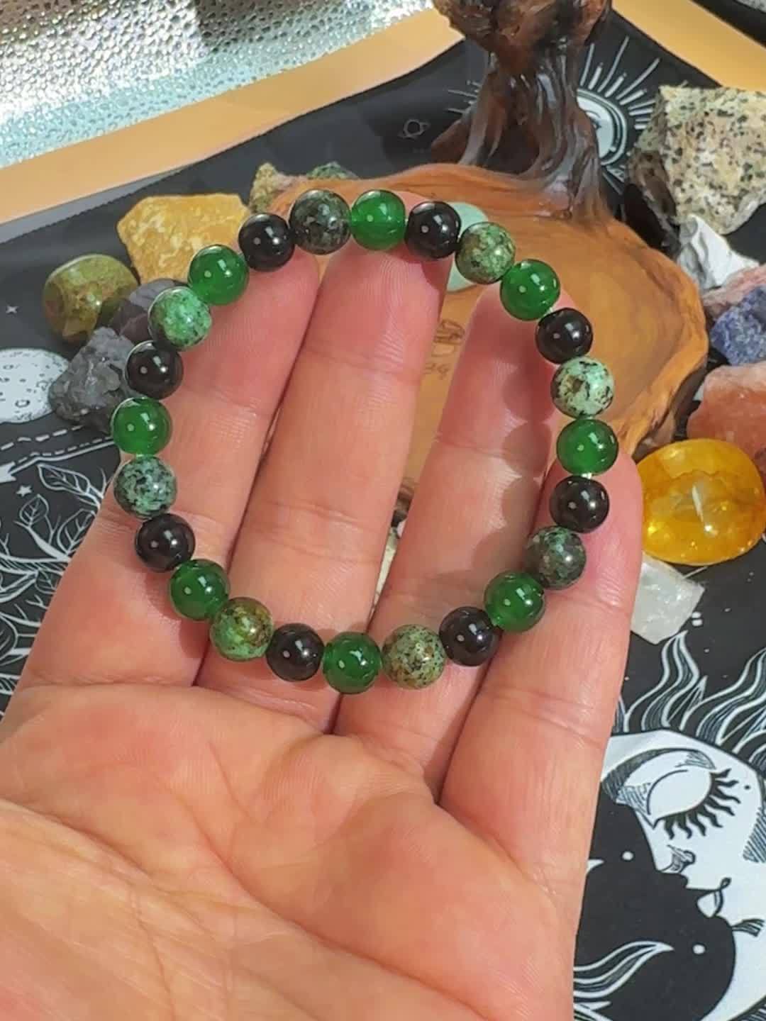 Vintage charm bracelet with green and brown beads attracts abundance and prosperity. Perfect gift for vintage style jewelry lovers.