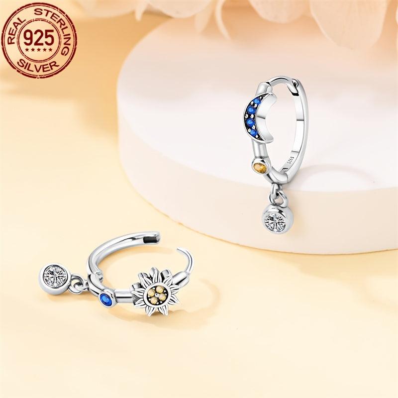 These celestial earrings feature synthetic moon and sun dangle design, crafted from high-quality 925 sterling silver. Ideal for wedding celebrations or as a Valentine's gift.