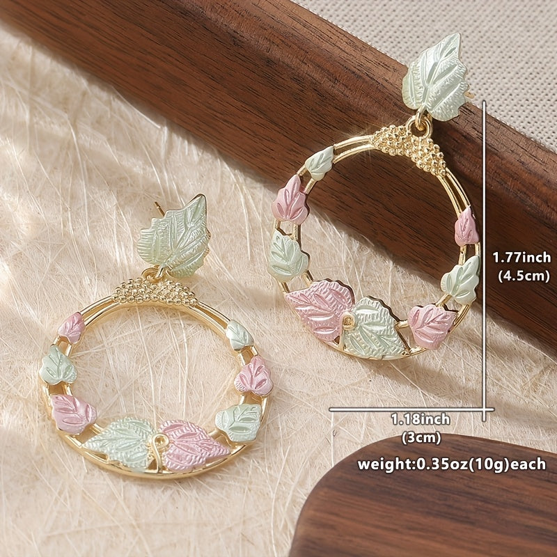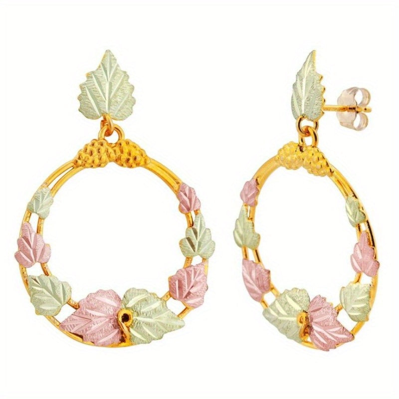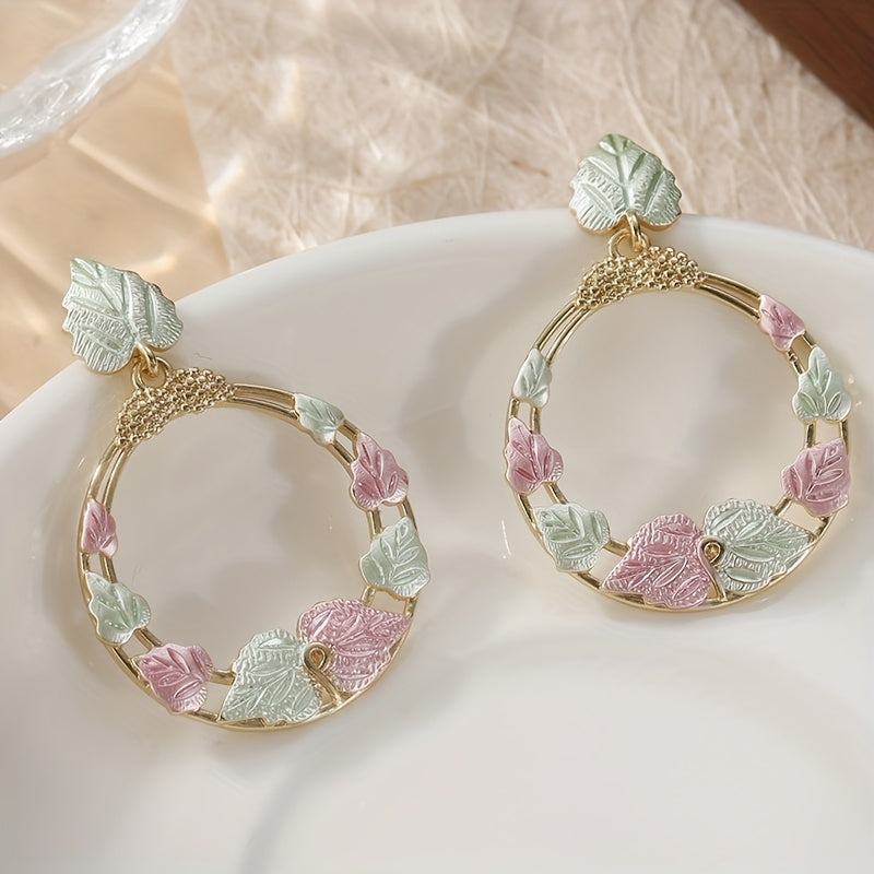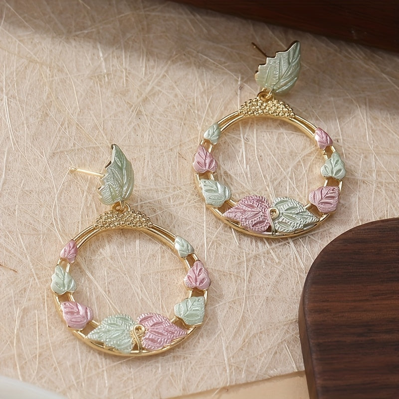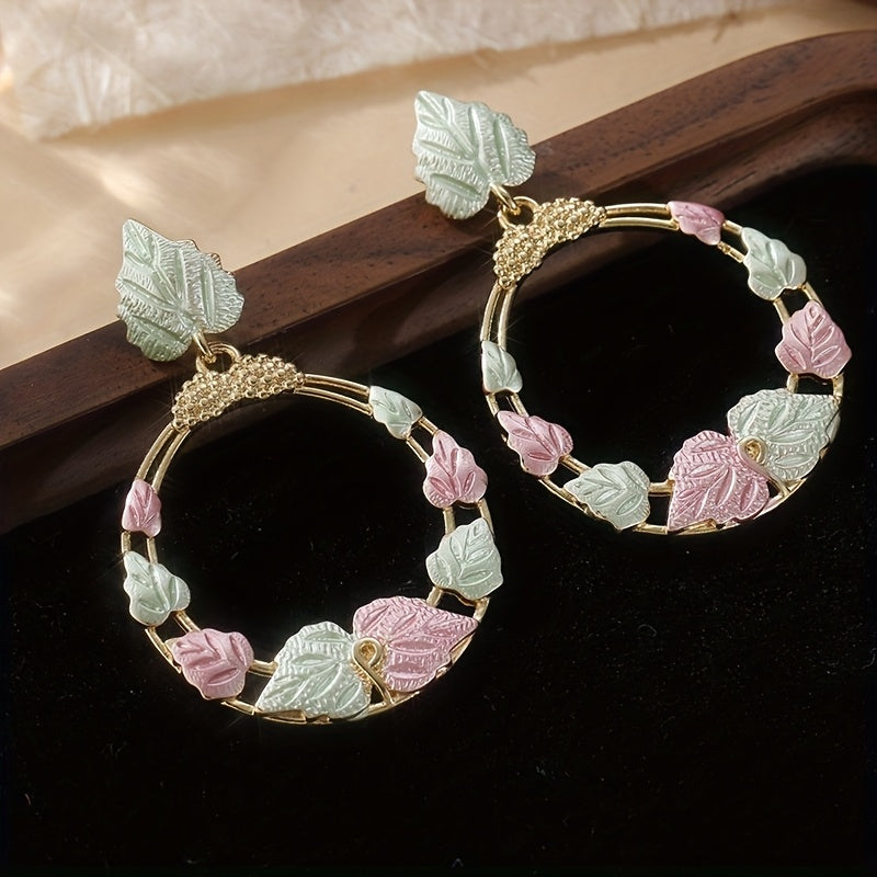 Boho Copper Earrings Leaf & Grape 14K Plating