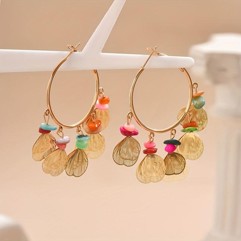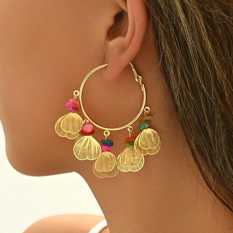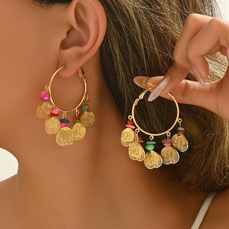 Elegant leaf earrings with natural stone accents, perfect for daily wear or parties.