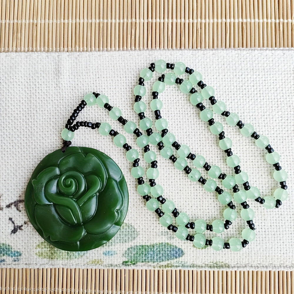 Boho Natural Stone Rose Pendant Necklace for Mother&