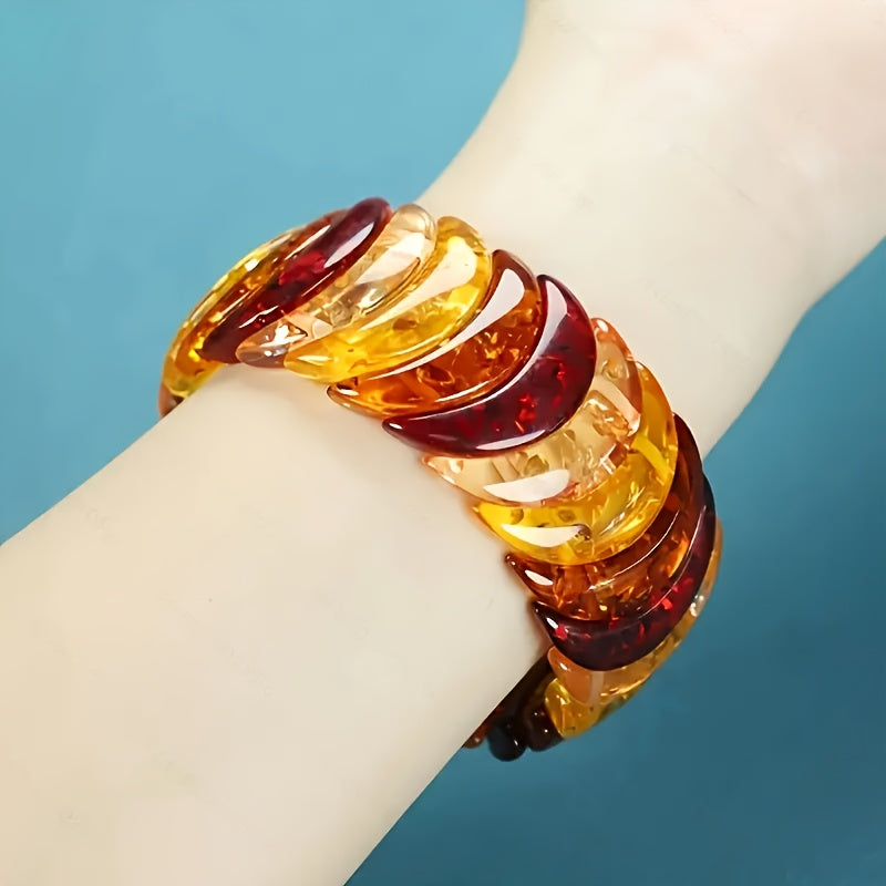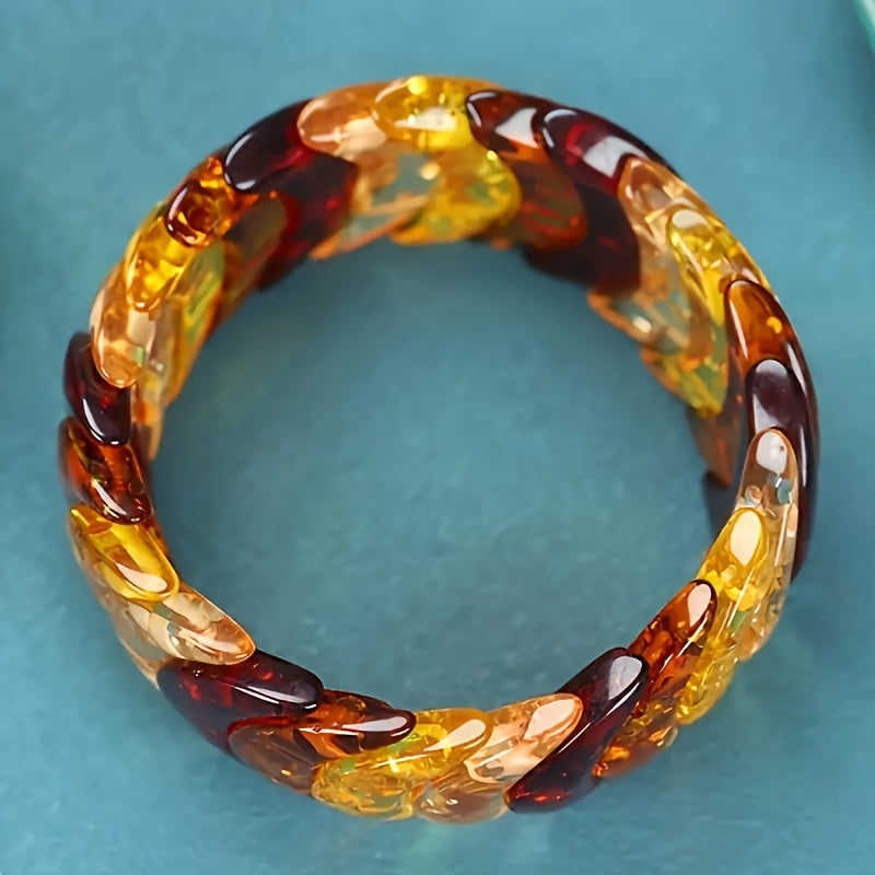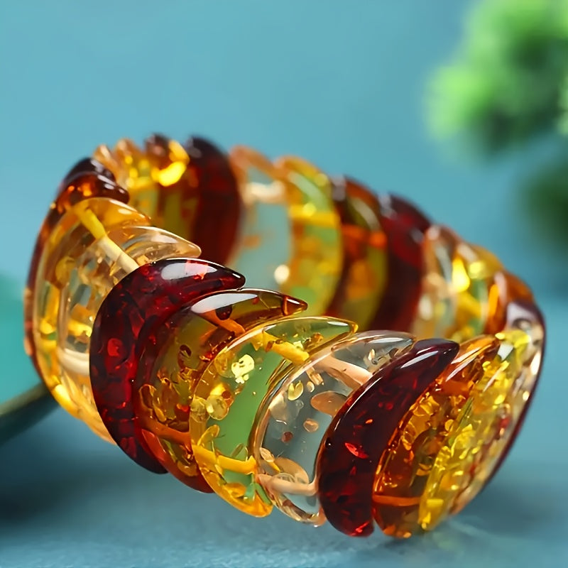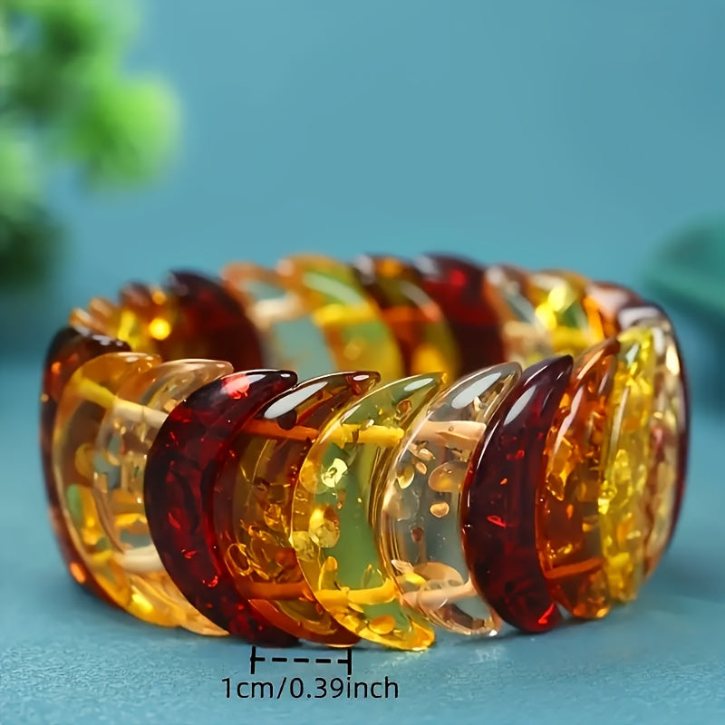 This Bohemian style bracelet features a stunning amber resin design with a chain, making it perfect for daily wear or as a thoughtful gift for festivals, birthdays, and family events.