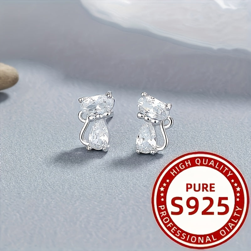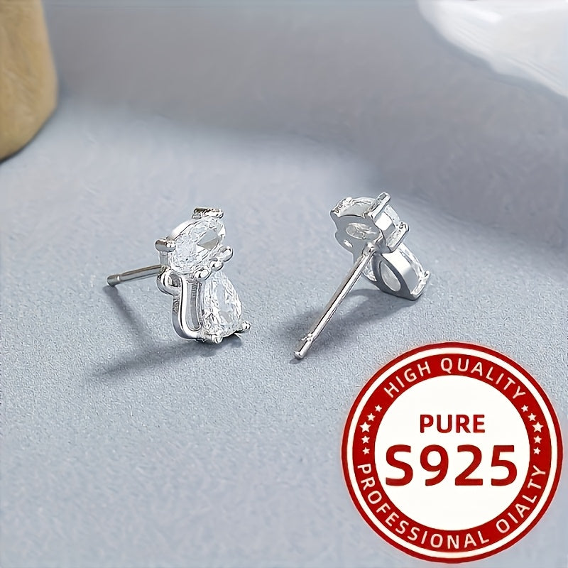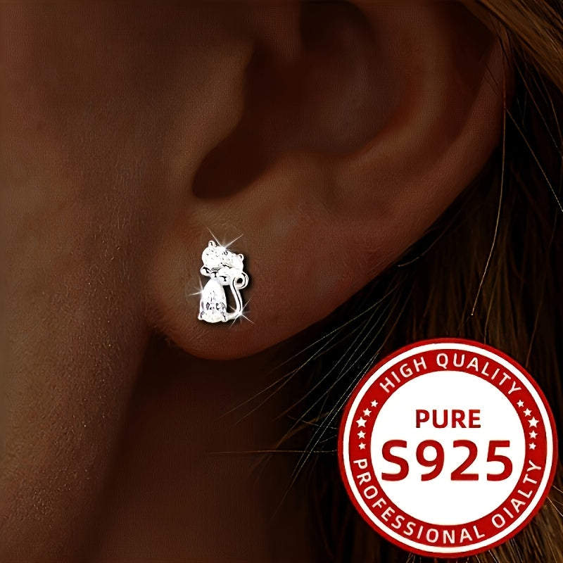 These boho style cat earrings are made of 925 sterling silver and feature hypoallergenic studs with cubic zirconia for a touch of sparkle.