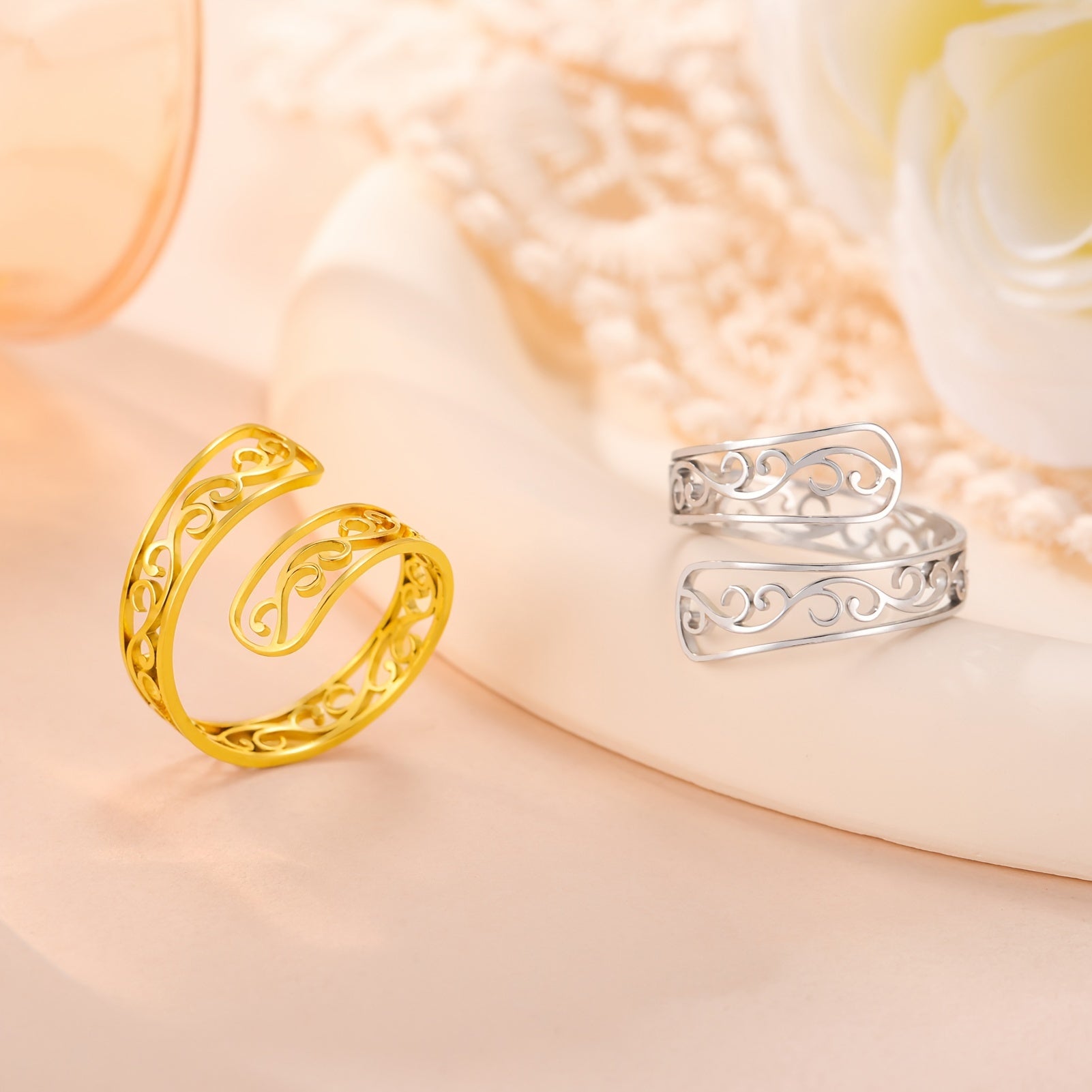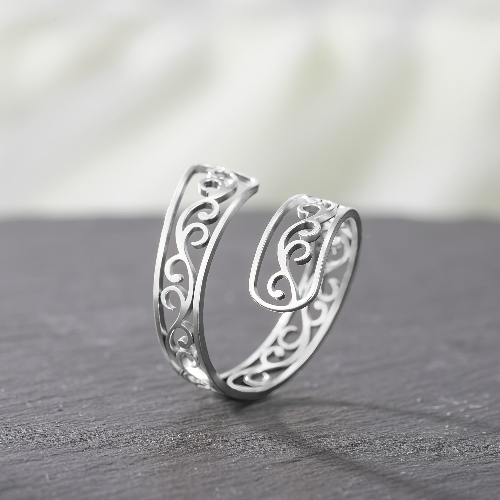 This wave open ring features a hollow wave design in bohemian vintage style, made of stainless steel for lasting wear. A perfect Valentine's gift for someone special.