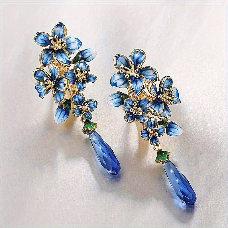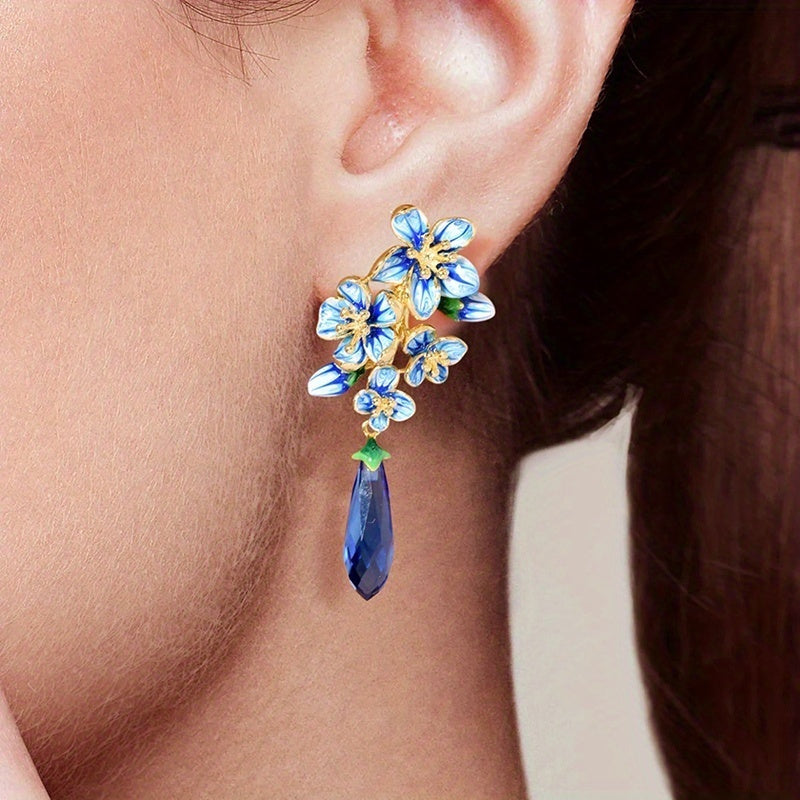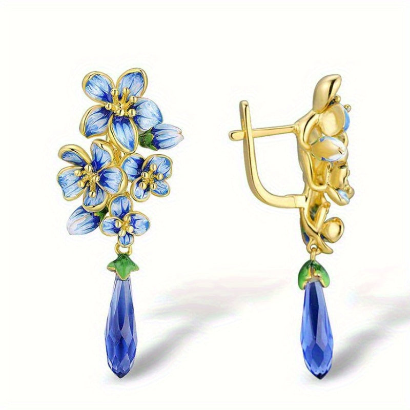 Add a touch of bohemian flair to your outfit with these dangle earrings featuring a synthetic zirconia flower pendant. Perfect for daily wear, parties, and vacations. Makes a great gift for your loved one.