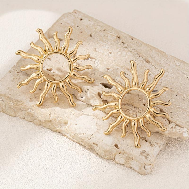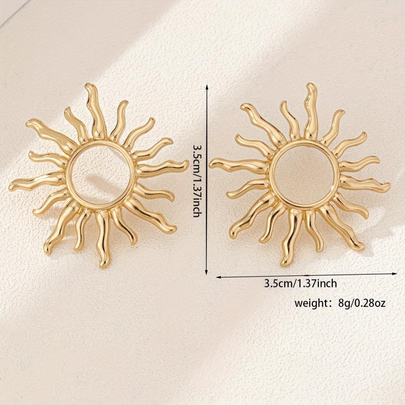 Add a touch of sunshine to your casual attire with these boho sunflower stud earrings. Crafted from zinc alloy and featuring a golden toned hollow circle design, these earrings are perfect for everyday wear.