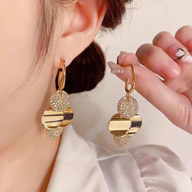Boho Tassel Earrings with Rhinestones Geometric Copper Posts