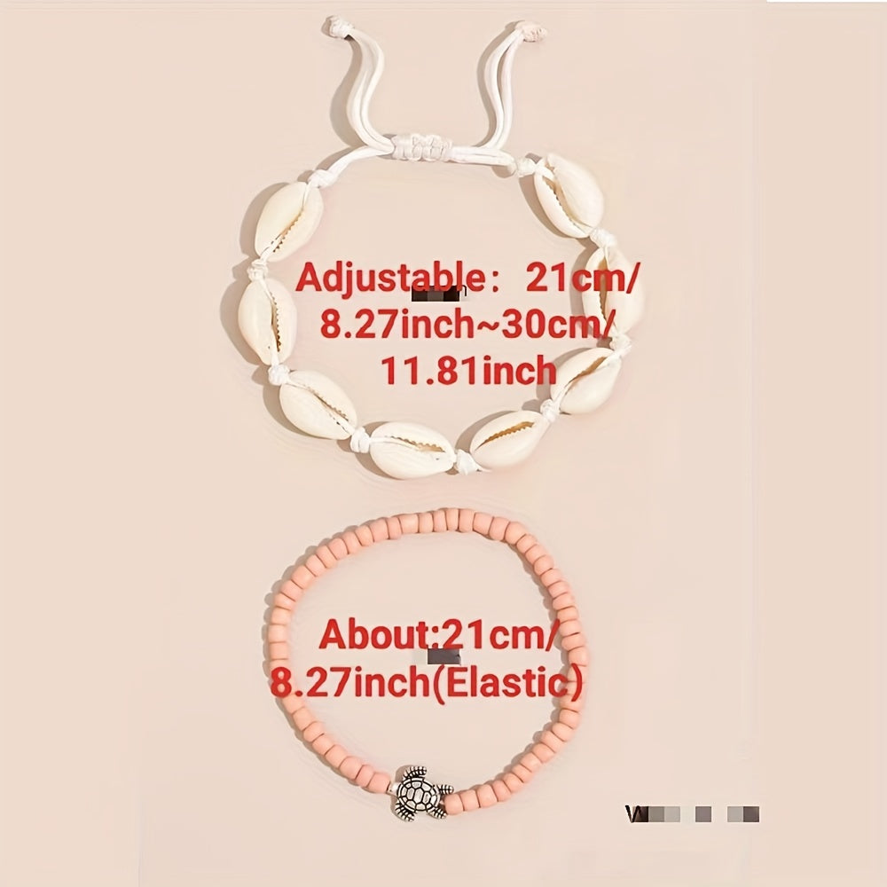 This 2pcs set includes braided anklets with charming shell and turtle charms, perfect for men and women.