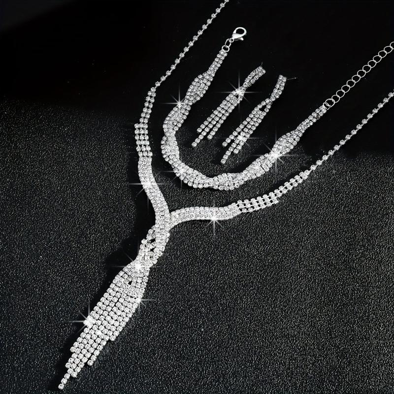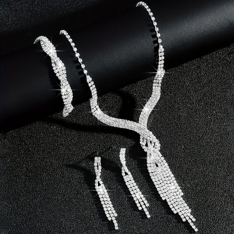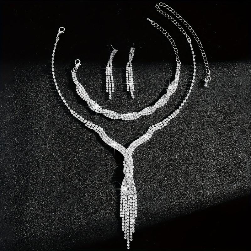 Elegant three-piece set featuring high-end sparkling rhinestone twist tassel design. Perfect for brides on their special day.