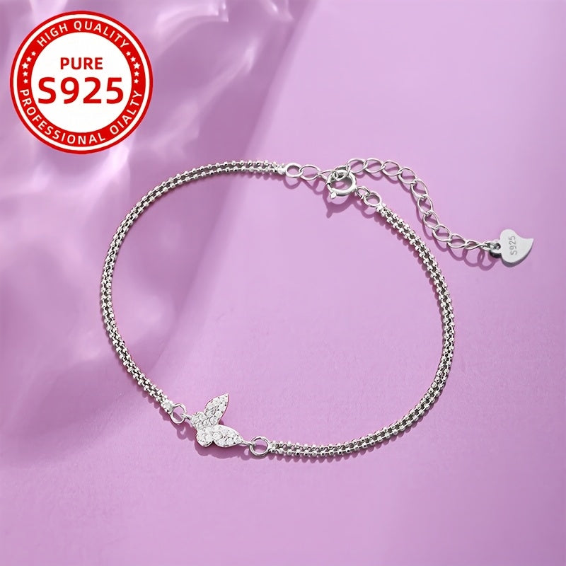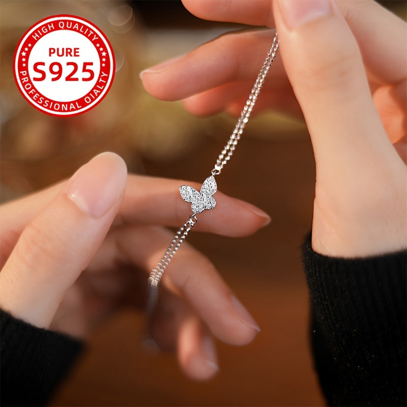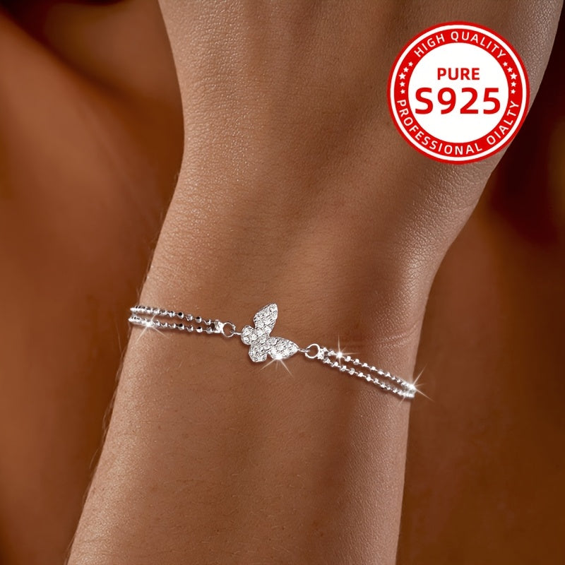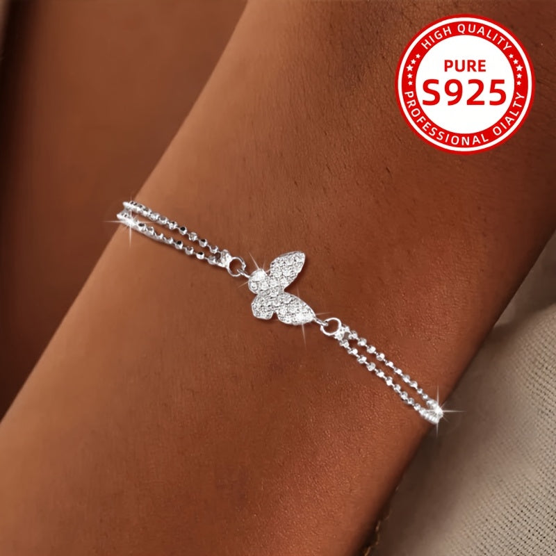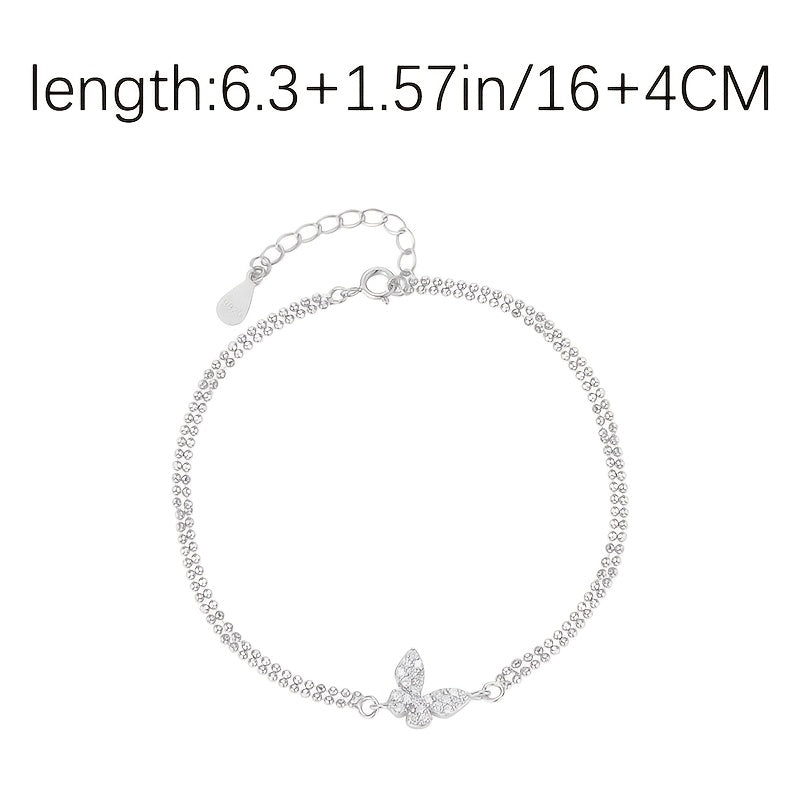 Add a touch of elegance to your outfit with this butterfly bracelet set. Made of 925 silver with zirconia stones, it is perfect for daily wear or special occasions.